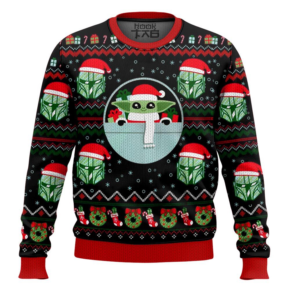 Hooktab Baby Yoda And Mandalorian Star Wars Ugly Christmas Sweater