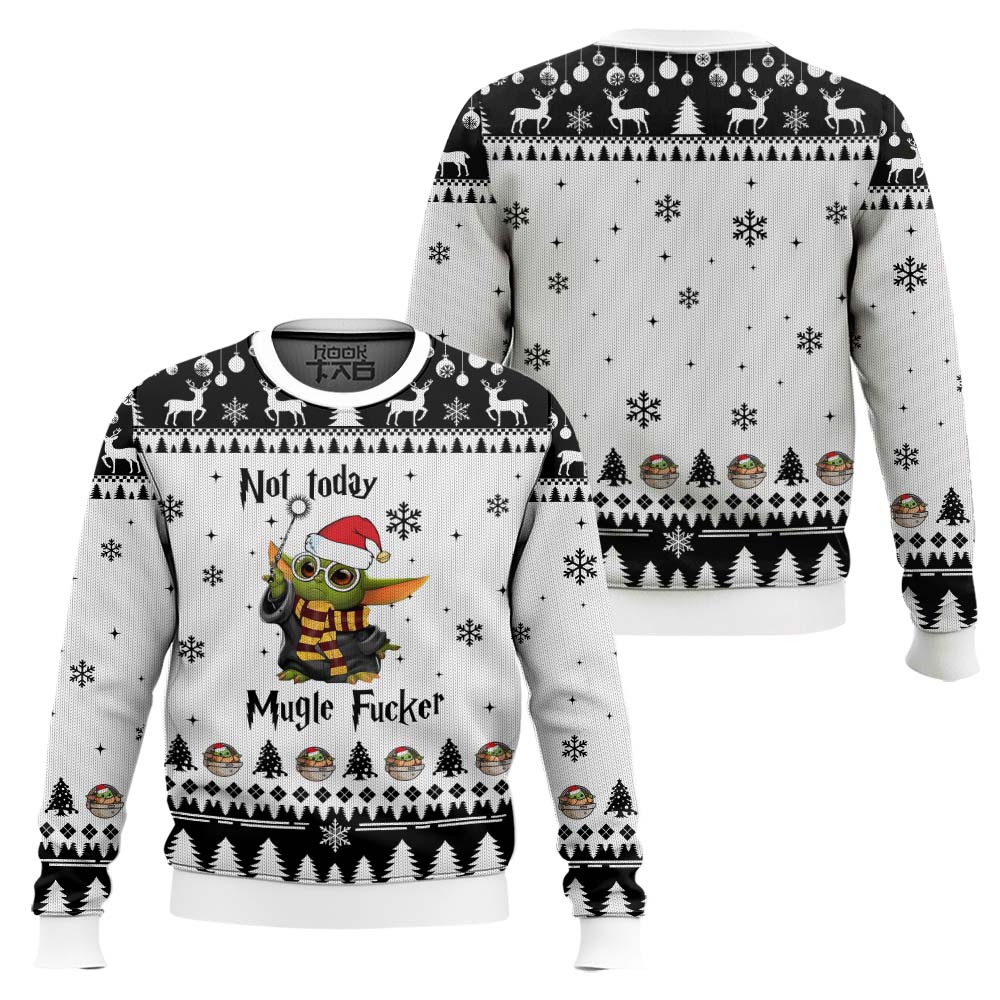 Hooktab Baby Yoda Not Today Muggle Fucker Ugly Christmas Sweater