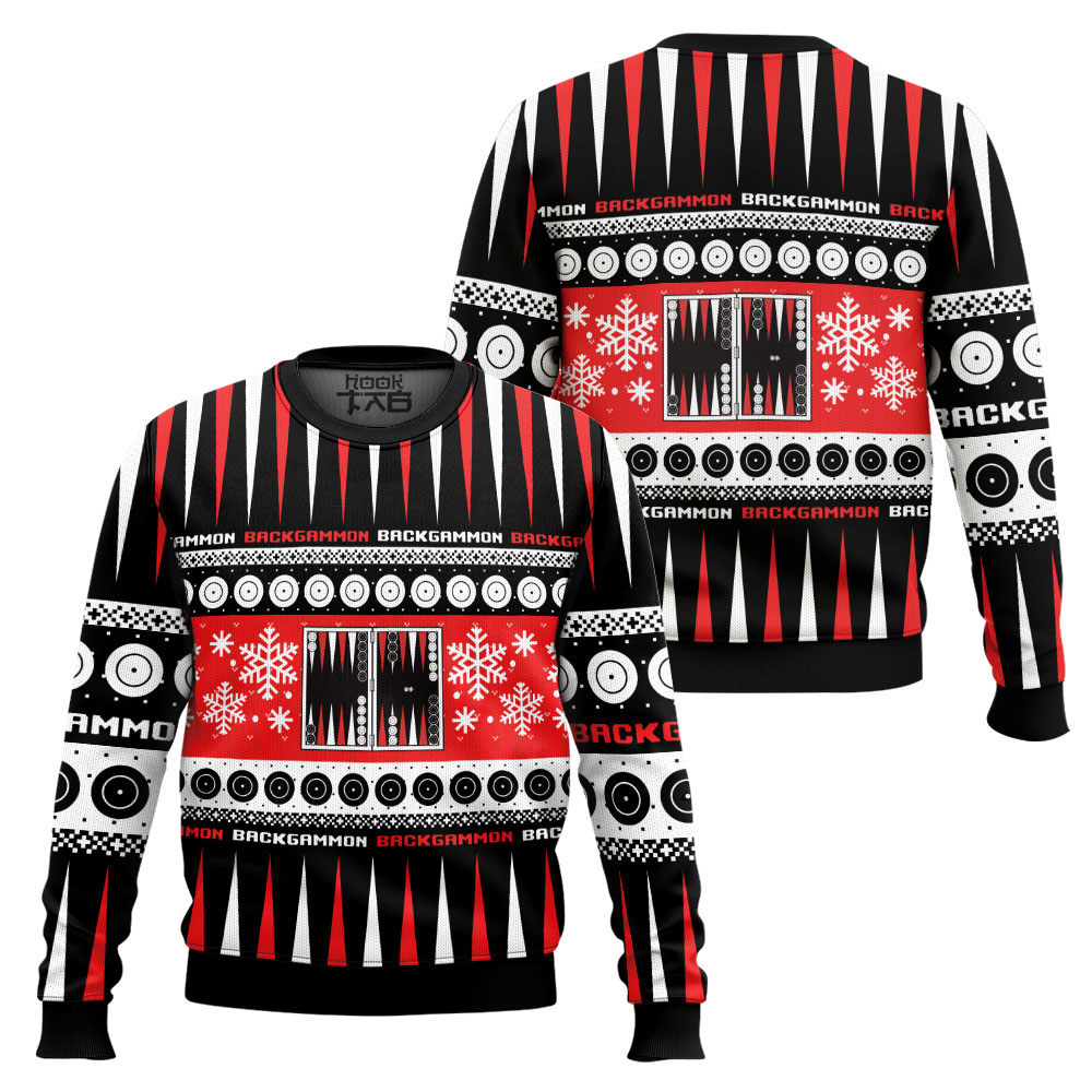 Hooktab Backgammon Board Games Ugly Christmas Sweater