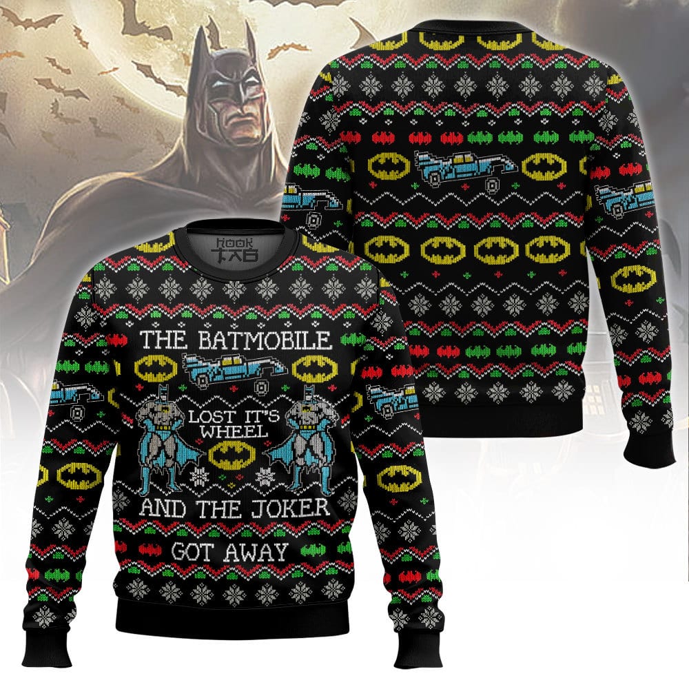 Hooktab Batmobile Lost Its Wheel And Joker Got Away Ugly Christmas Sweater