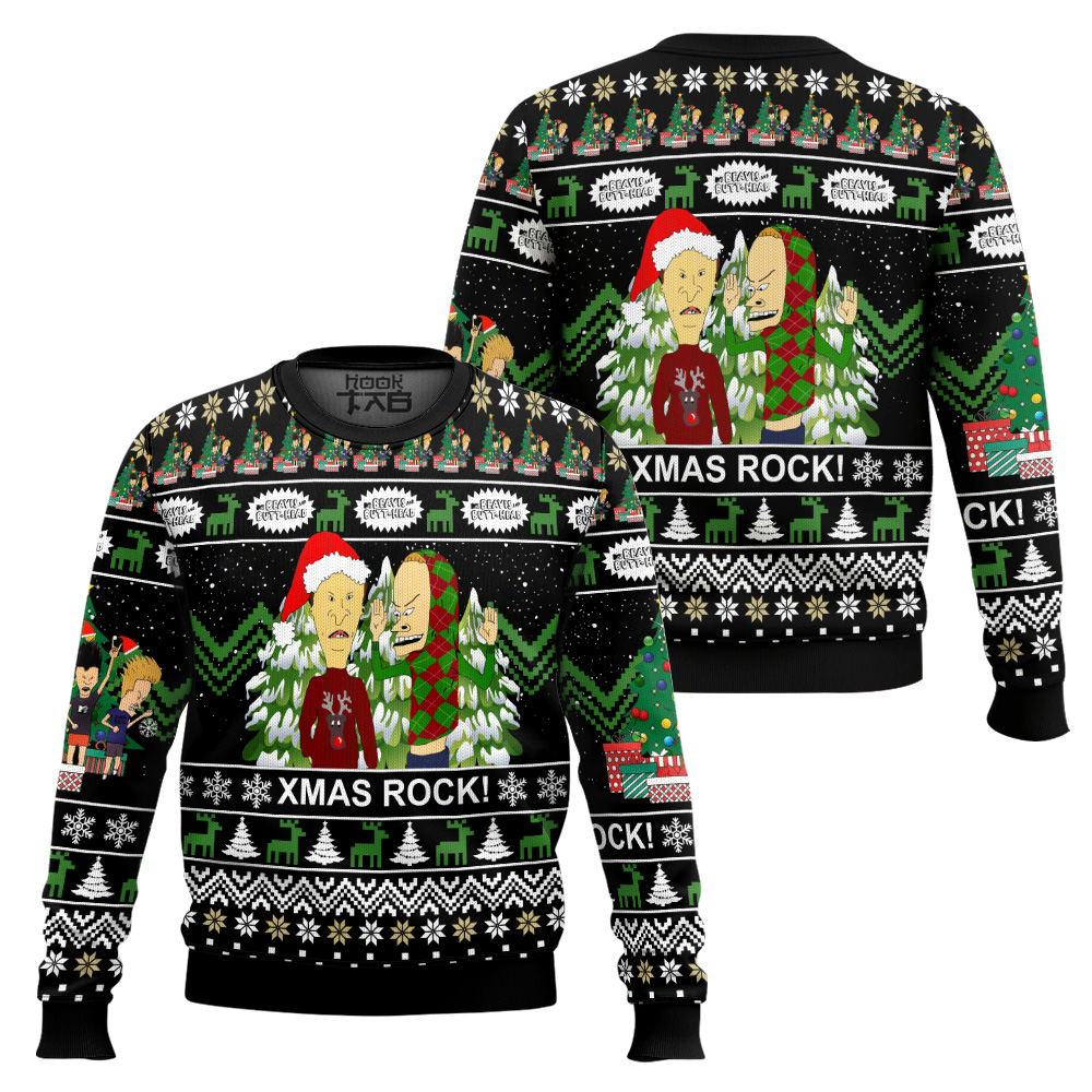 Hooktab Beavis And Butt-head Xmas Rock! Ugly Christmas Sweater