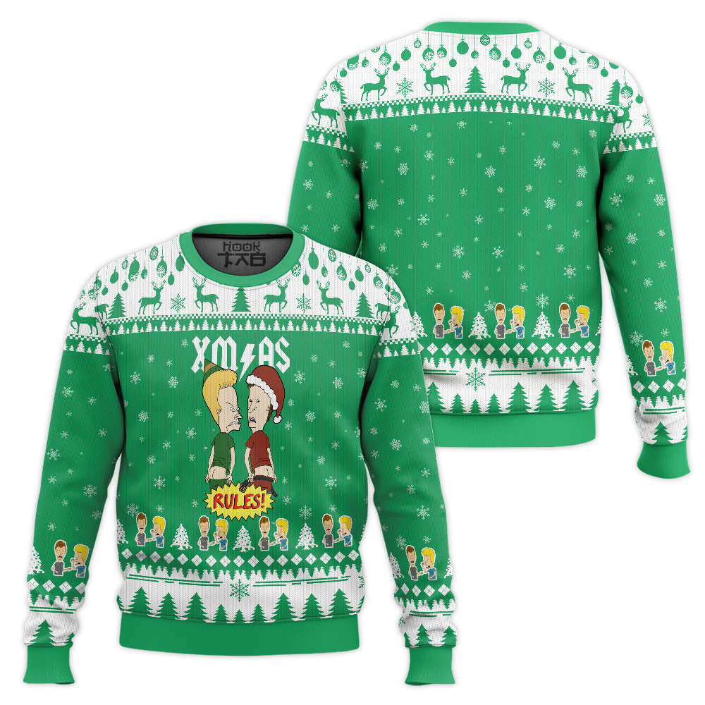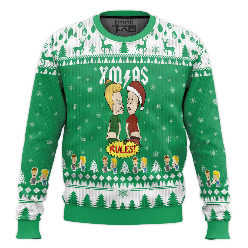 Hooktab Beavis And Butt-head Xmas Rules Ugly Christmas Sweater