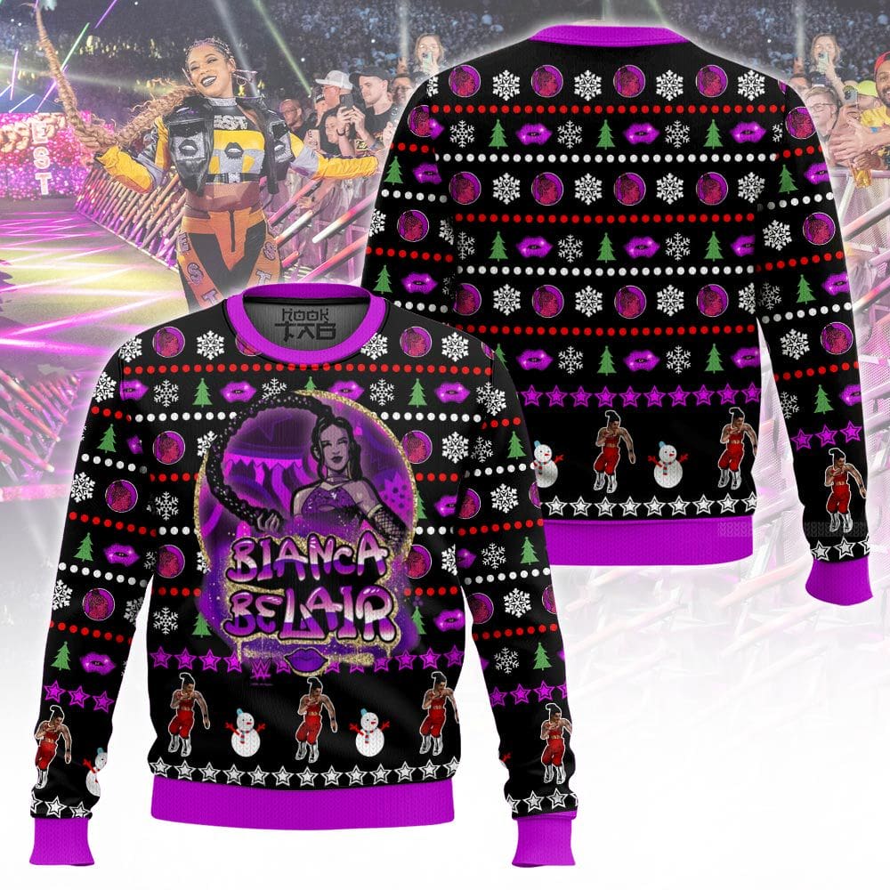 Hooktab Bianca Belair WWE Ugly Christmas Sweater