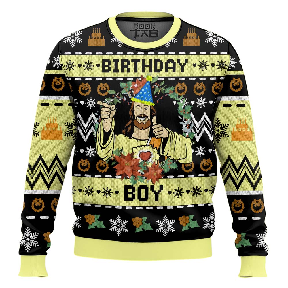 Hooktab Birthday Boy Jesus Ugly Christmas Sweater