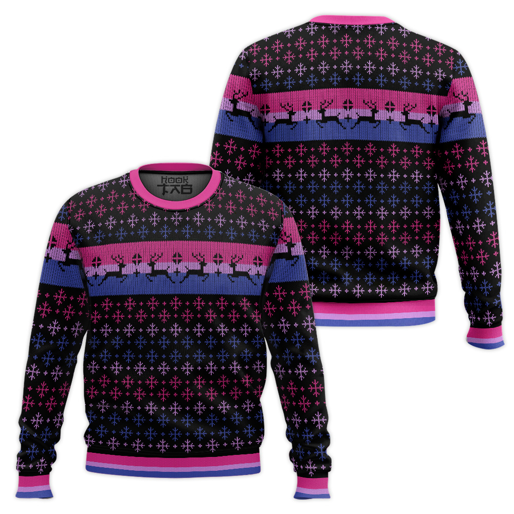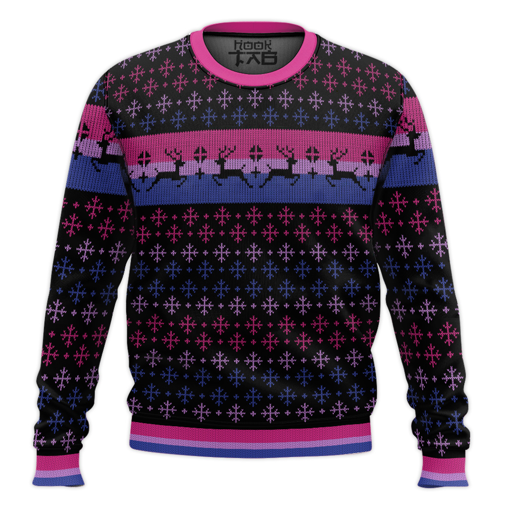 Hooktab Bisexual Pride Flag LGBT Support Ugly Christmas Sweater