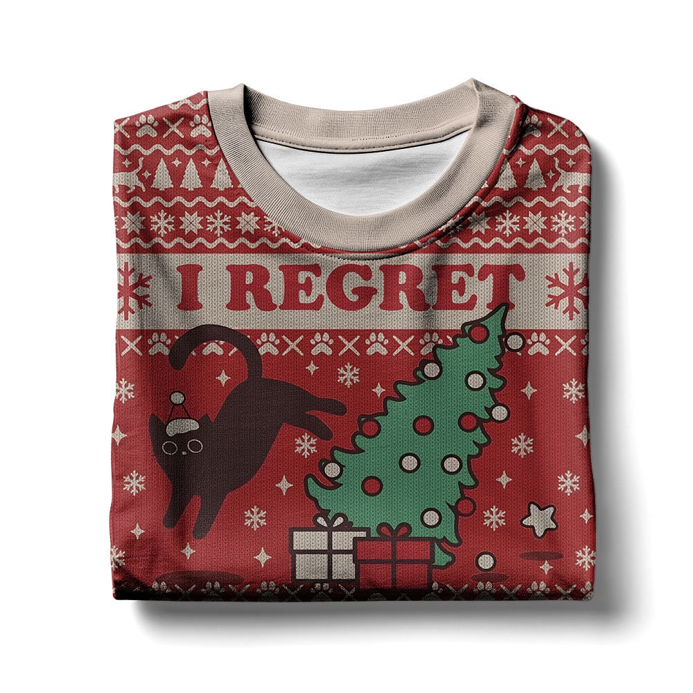 On The Naughty List And I Regret Nothing Cat Christmas Ugly Sweater