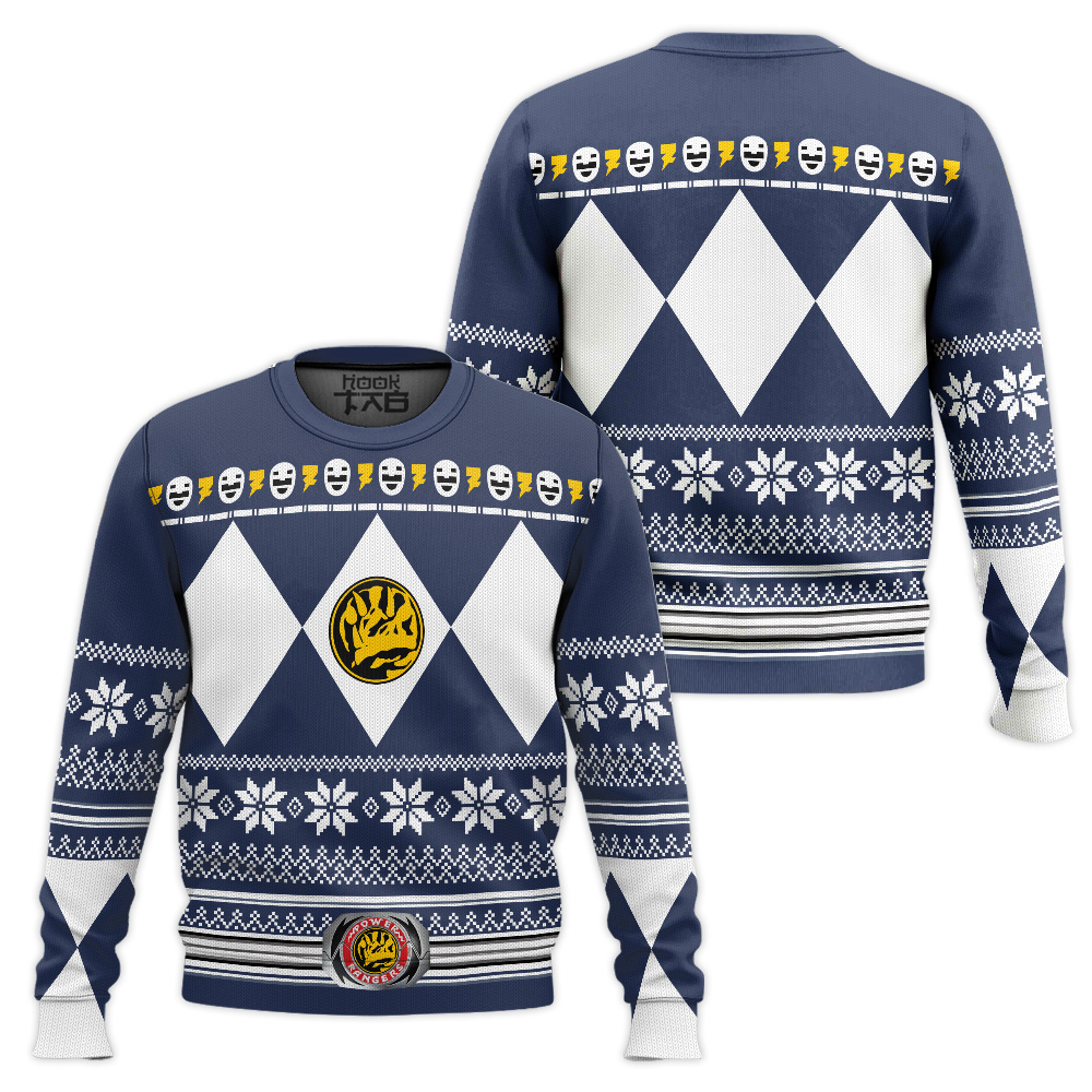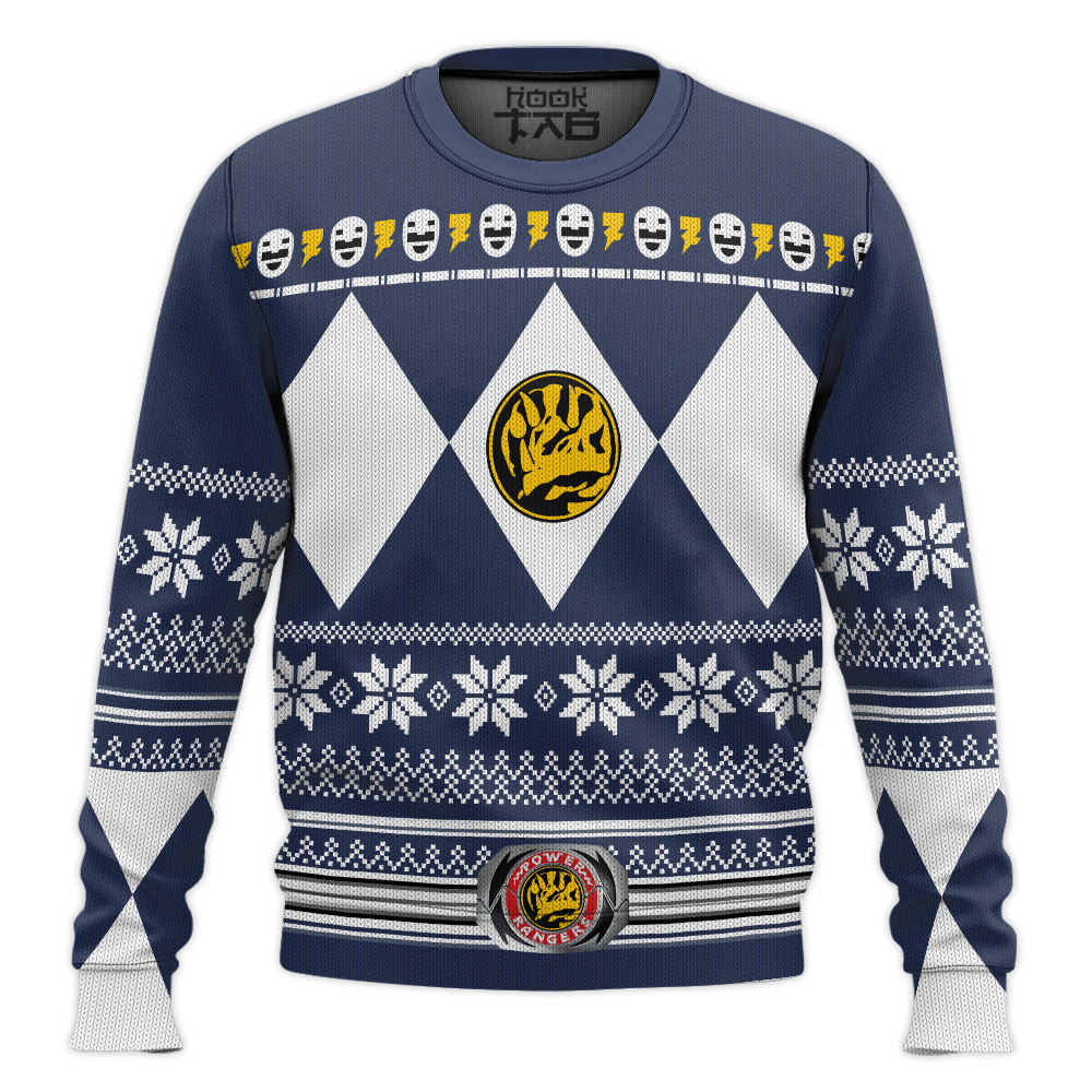 Hooktab Blue Ranger Mighty Morphin Power Ranger Ugly Christmas Sweater