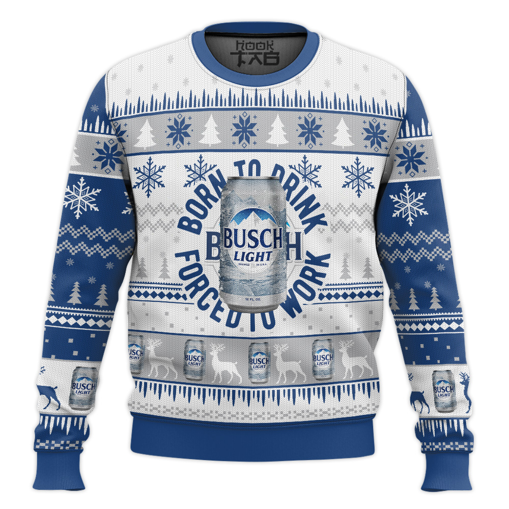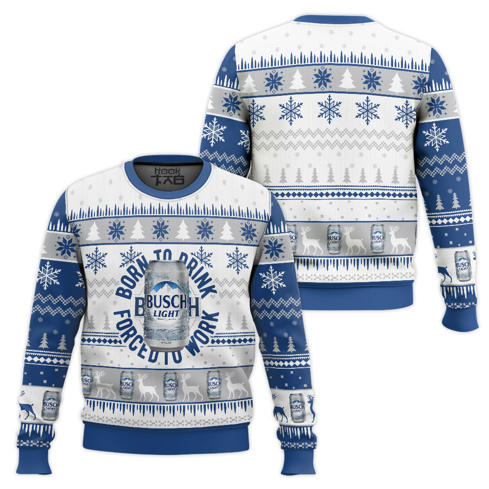 Hooktab Born To Drink Busch Light Ugly Christmas Sweater