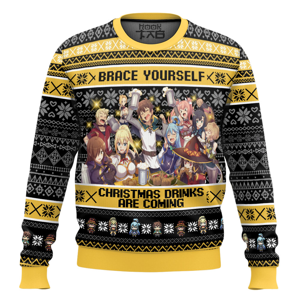 Hooktab Brace Yourself Konosuba Ugly Christmas Sweater