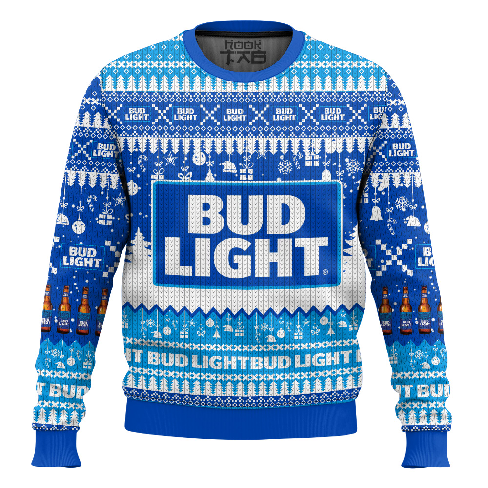 Hooktab Bud Light American Beer Ugly Christmas Sweater