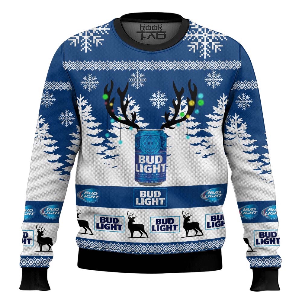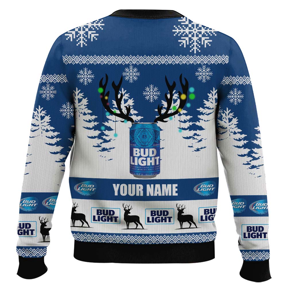 Hooktab Bud Light Beer – Custom Name Ugly Christmas Sweater