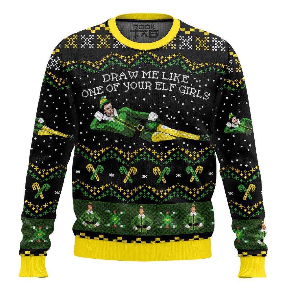 Hooktab Buddy Hobbs Draw Me Like One Of Your Elf Girls Ugly Christmas Sweater