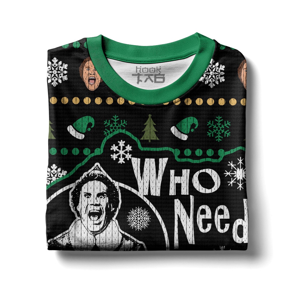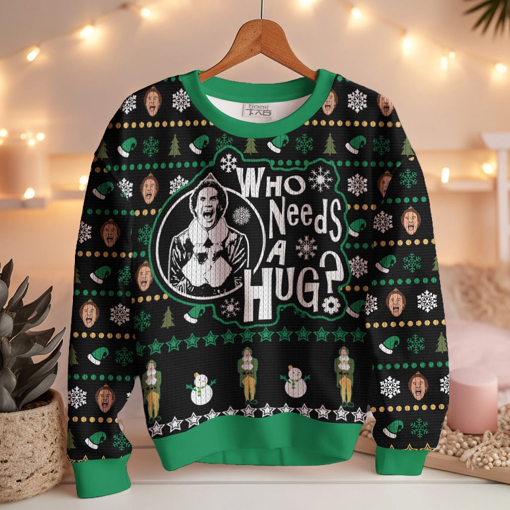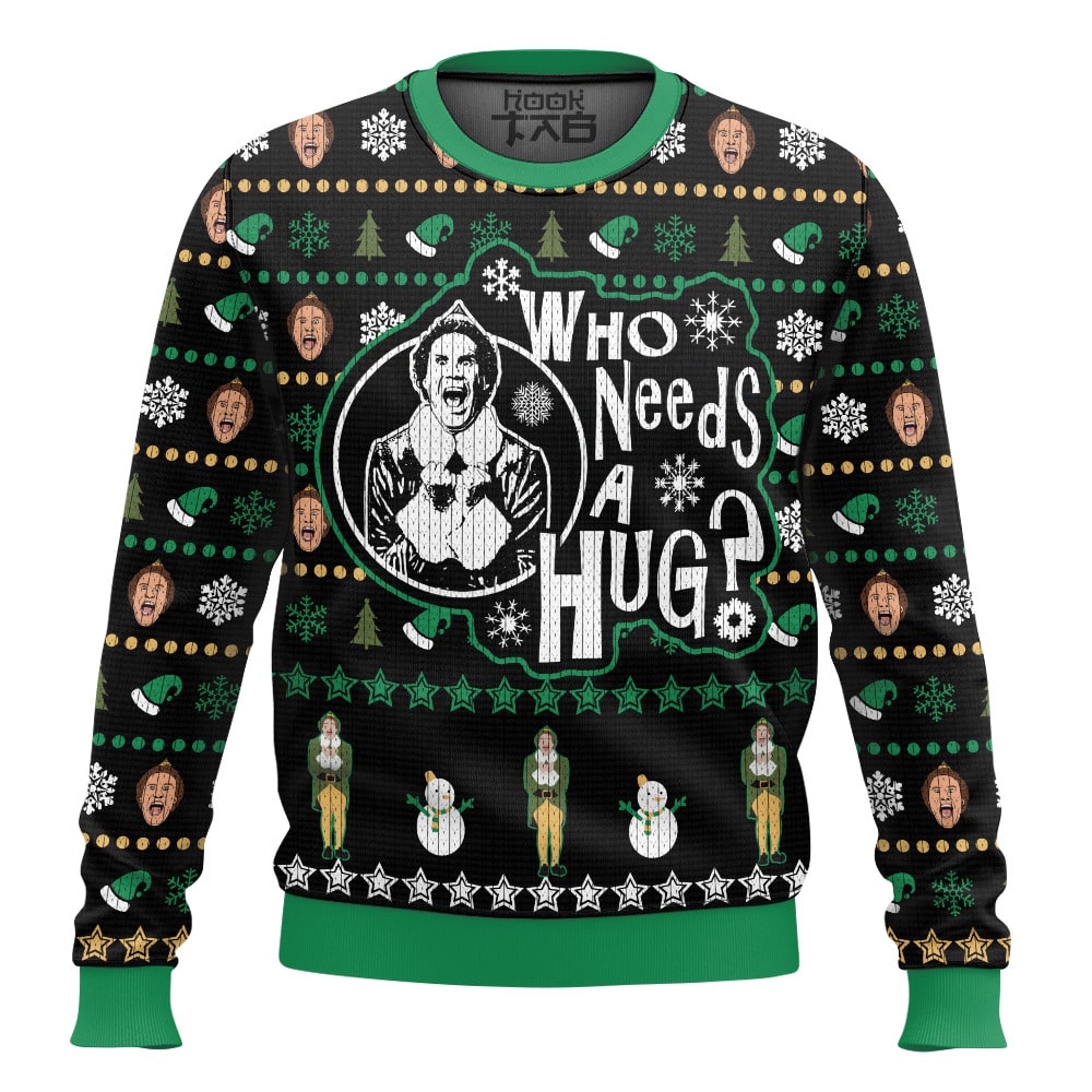 Hooktab Buddy Who Needs A Hug Elf Ugly Christmas Sweater