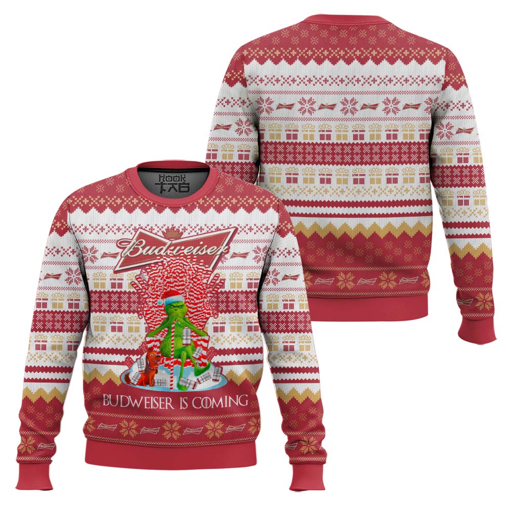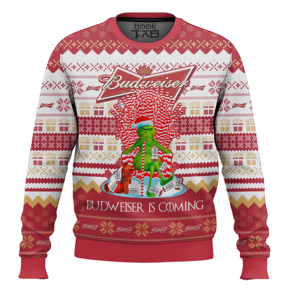 Hooktab Budweiser Is Coming Ugly Christmas Sweater