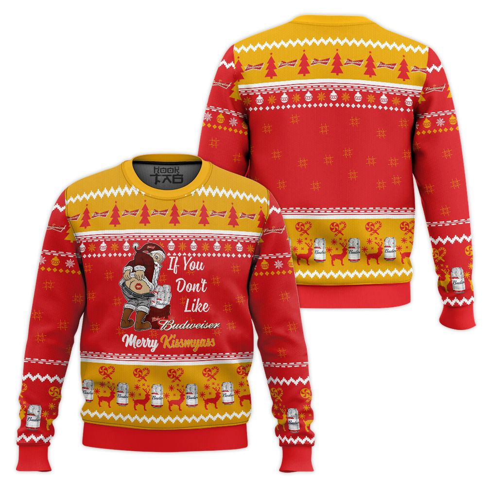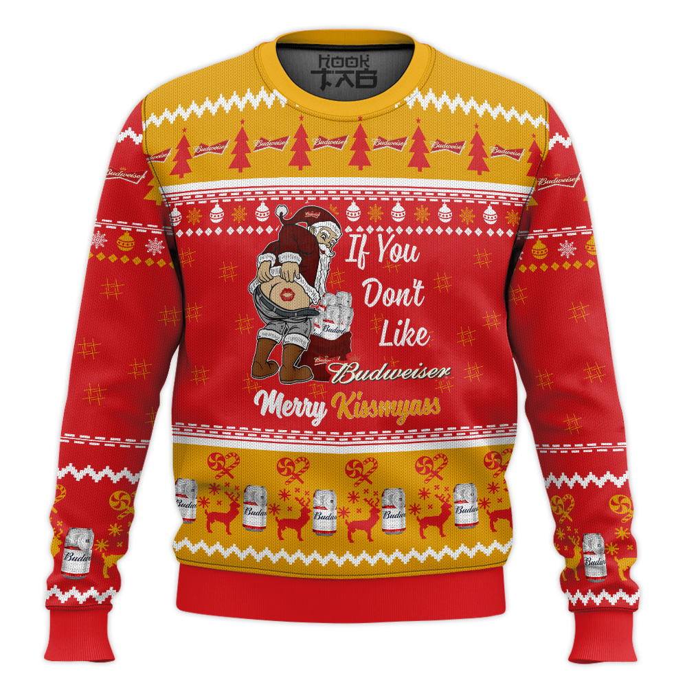 Hooktab Budweiser Merry Kissmyass Ugly Christmas Sweater