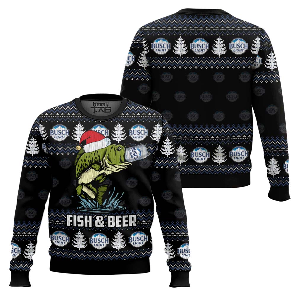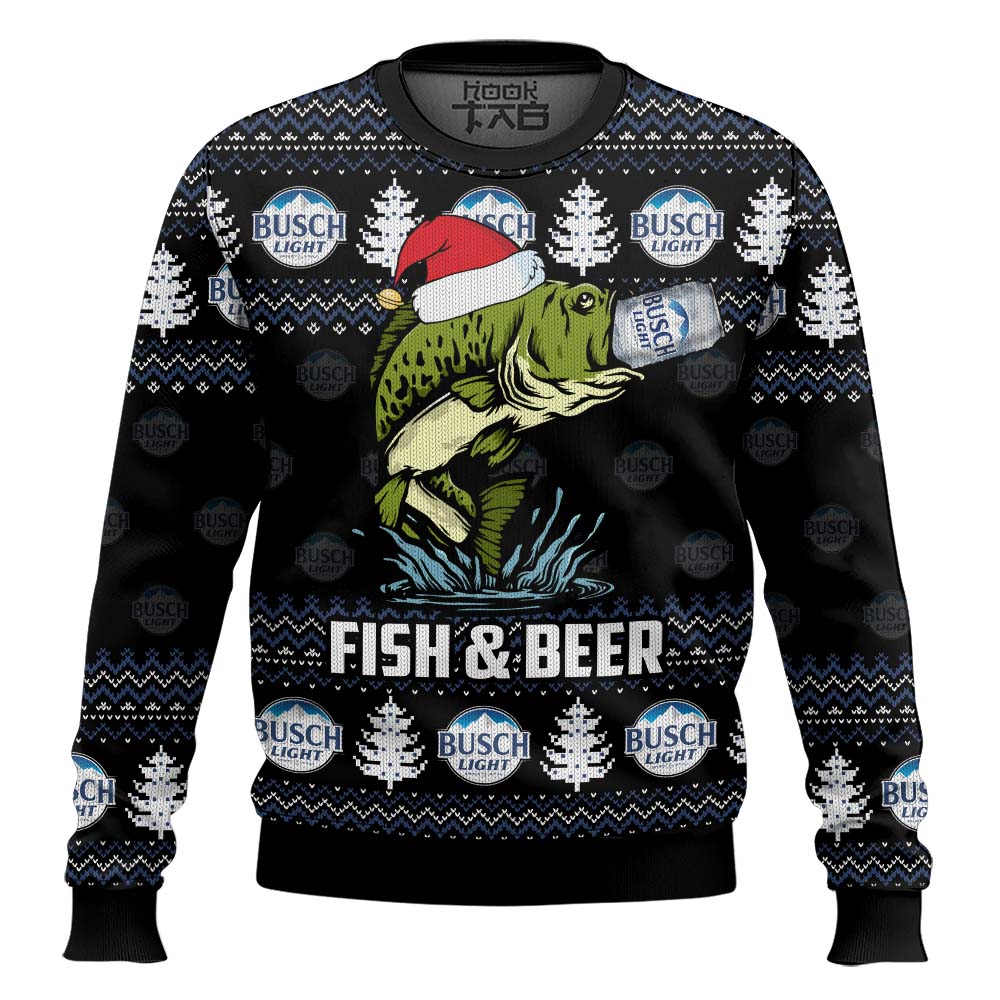 Hooktab Busch Light Fish And Beer Ugly Christmas Sweater