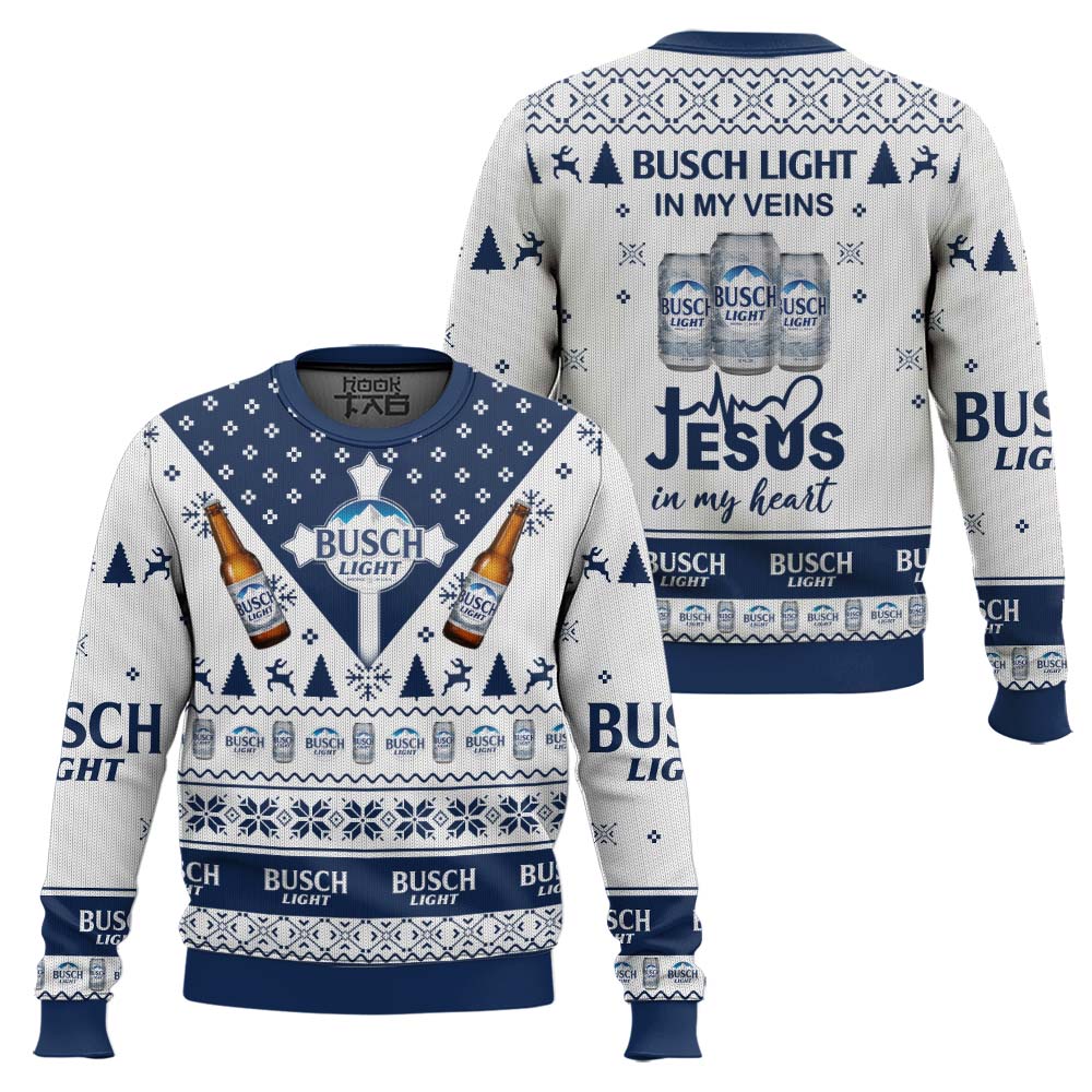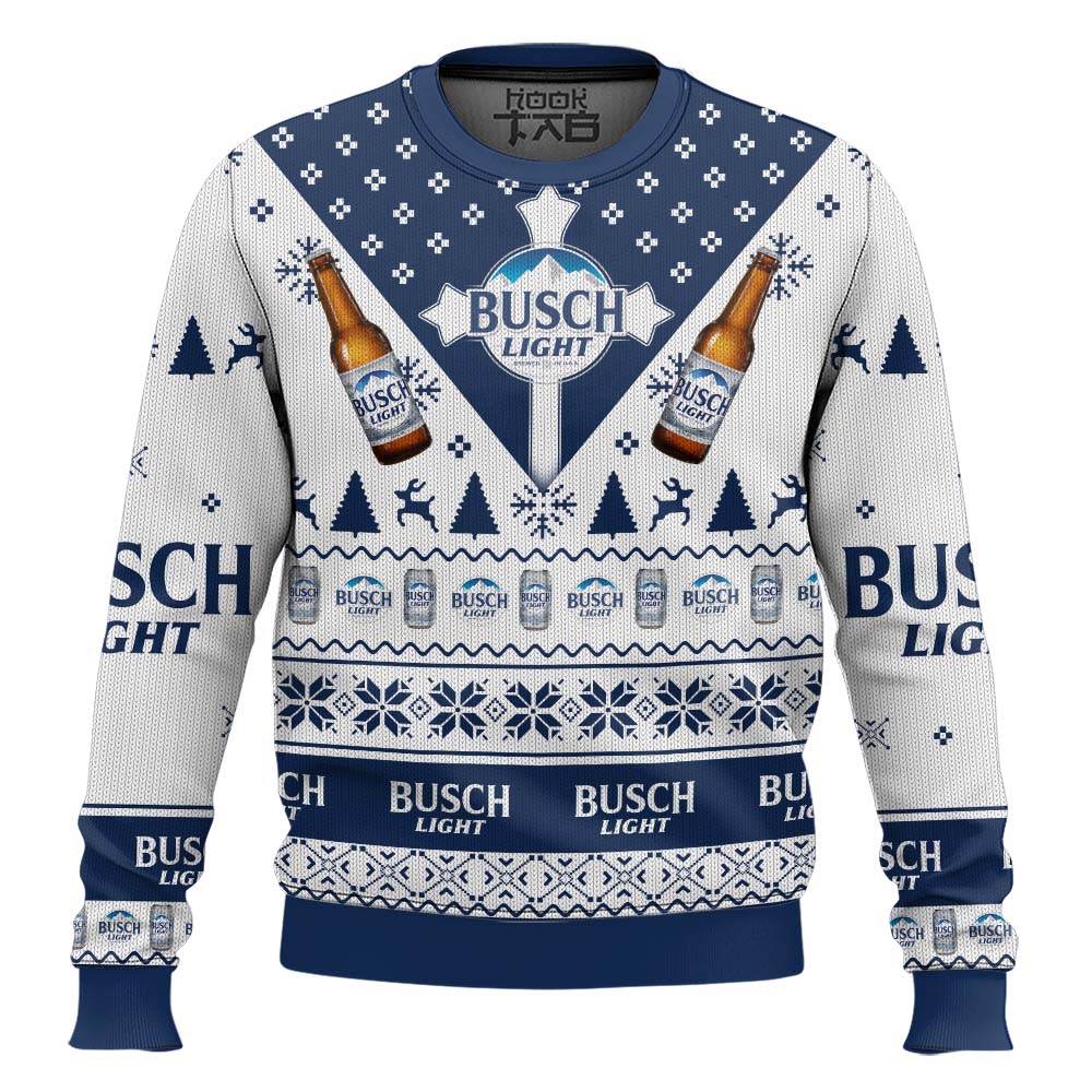 Hooktab Busch Light Lager Beer Ugly Christmas Sweater
