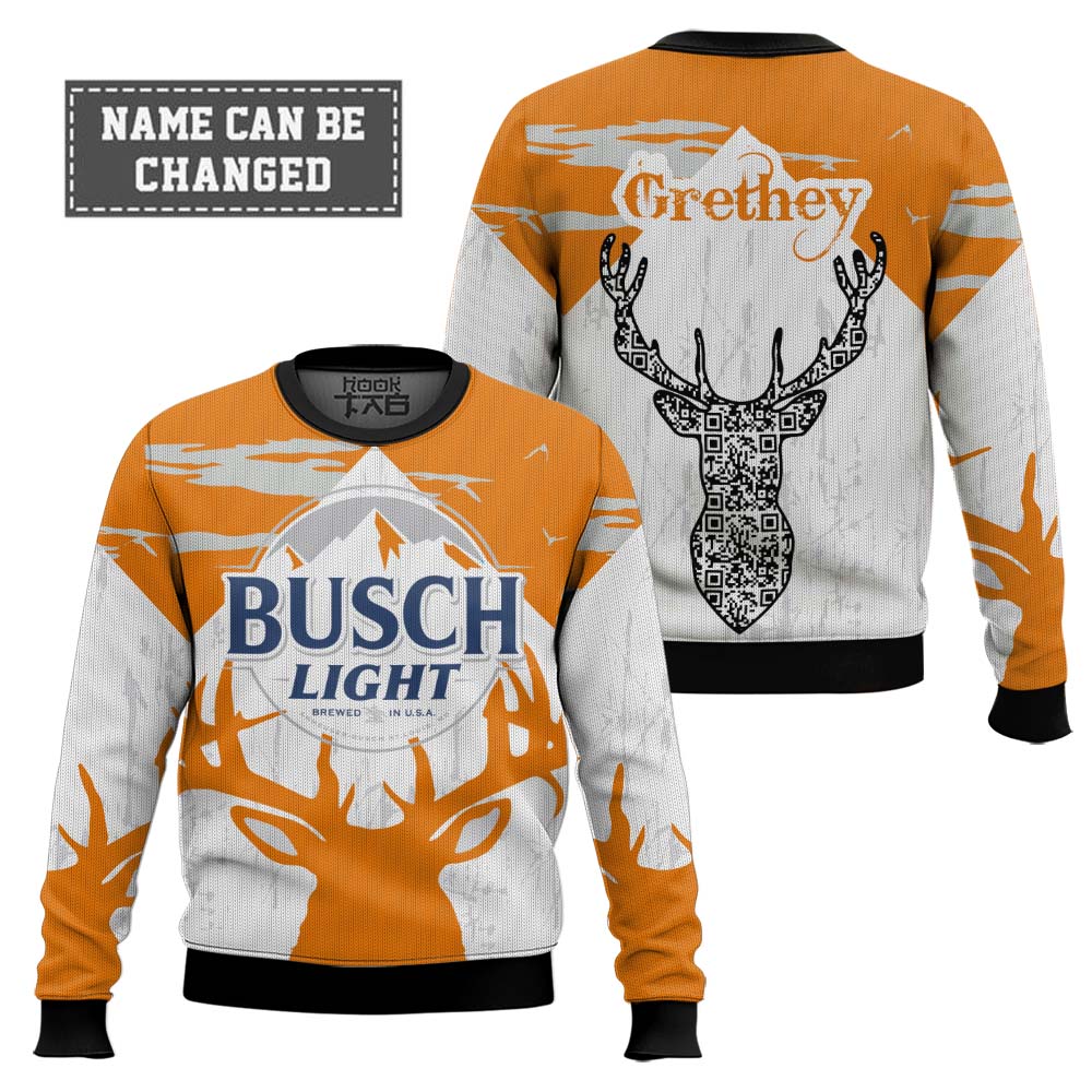 Hooktab Busch Light Reindeer – Custom Name Ugly Christmas Sweater