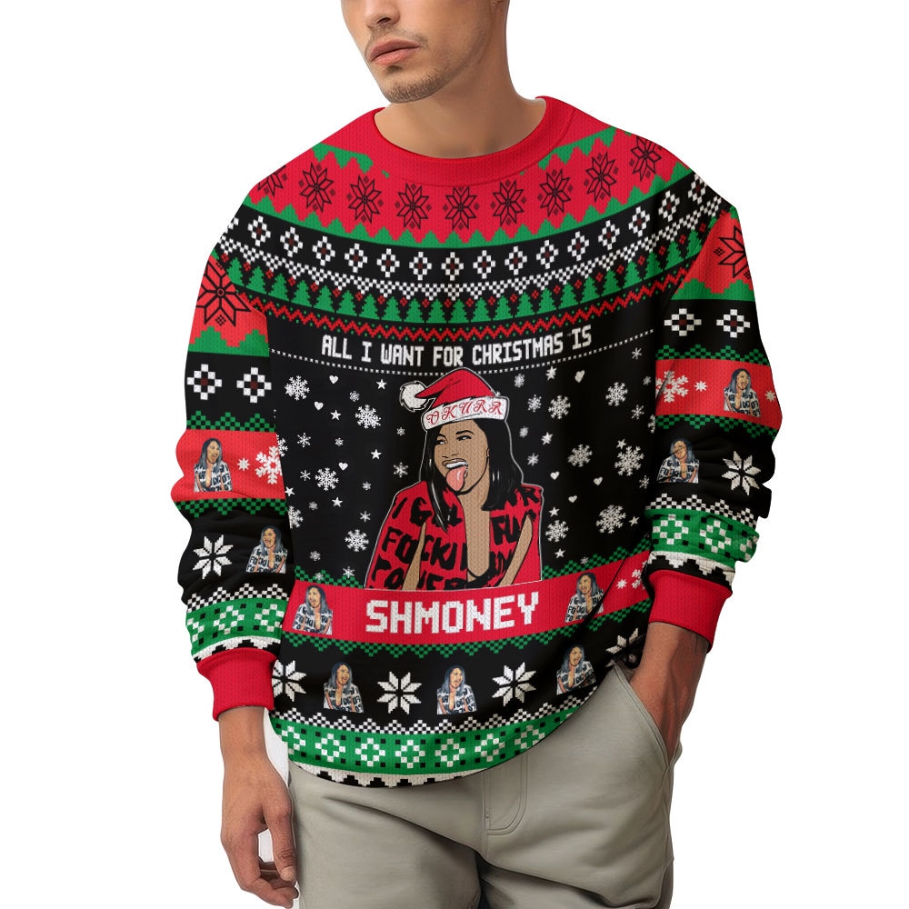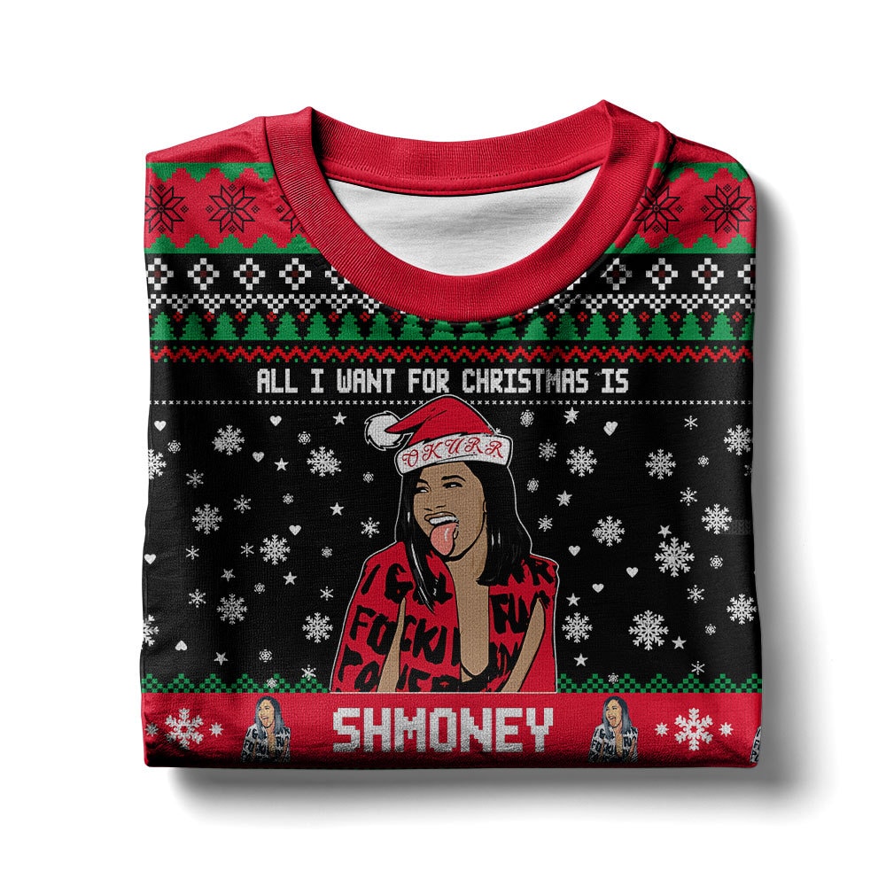 Hooktab Cardi B All I Want Is Shmoney Ugly Christmas Sweater