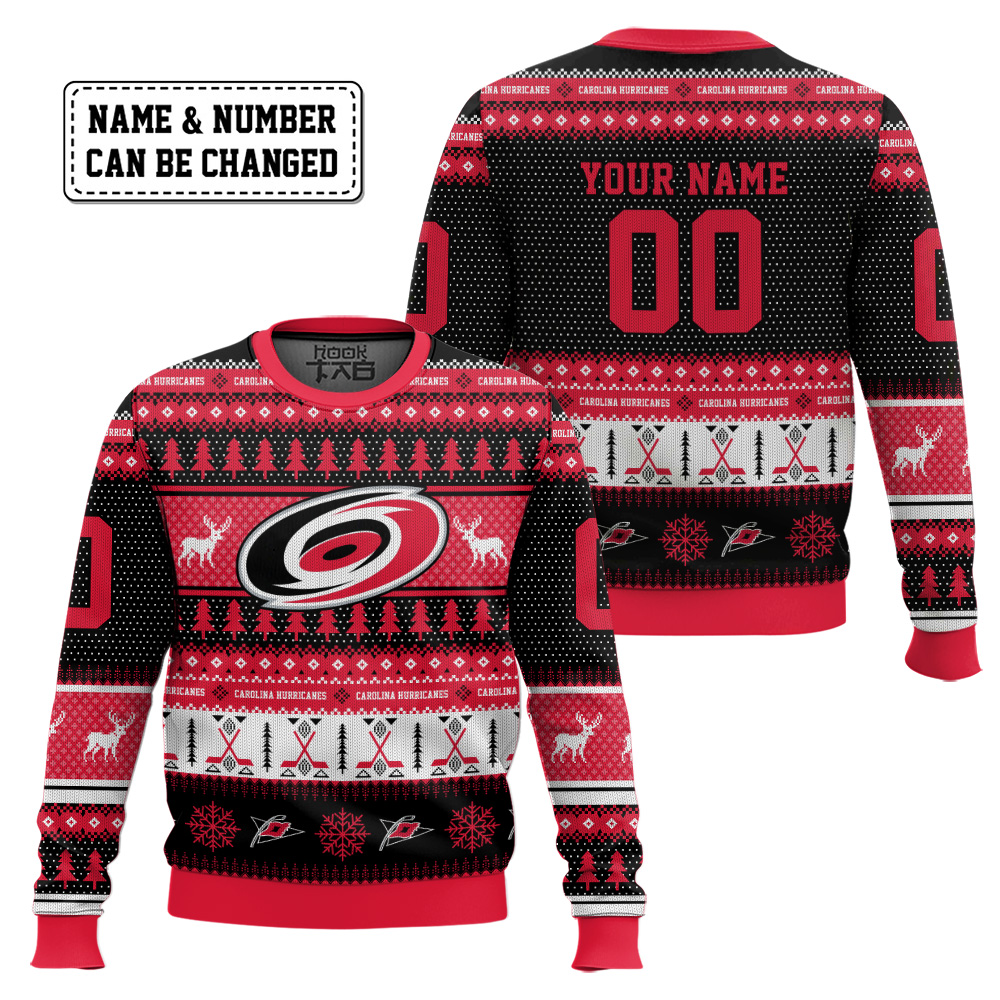 Hooktab Carolina Hurricanes – Custom Name And Number Ugly Sweater