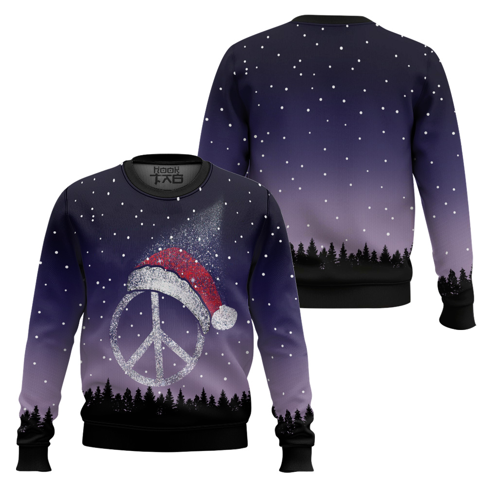 Hooktab Christmas Hippie Peace Sign Ugly Christmas Sweater