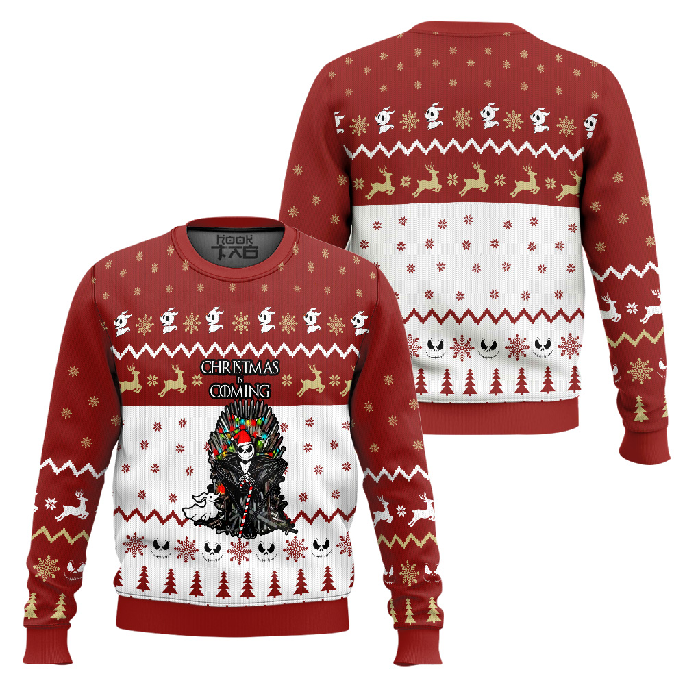 Hooktab Christmas Is Coming Jack Skellington Ugly Christmas Sweater
