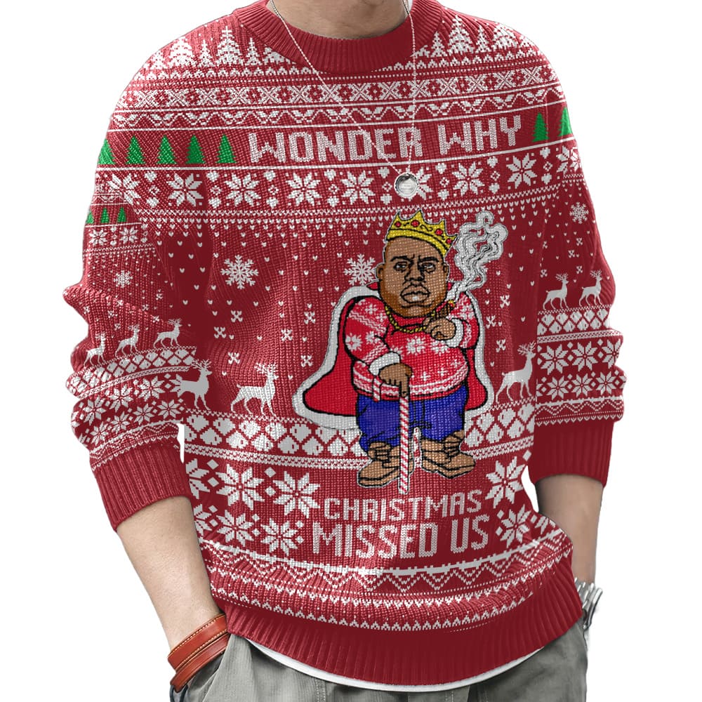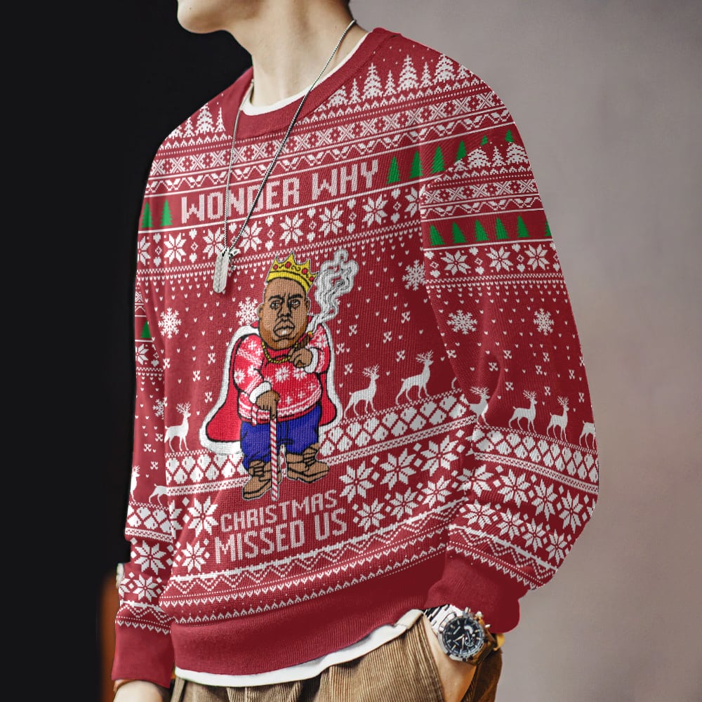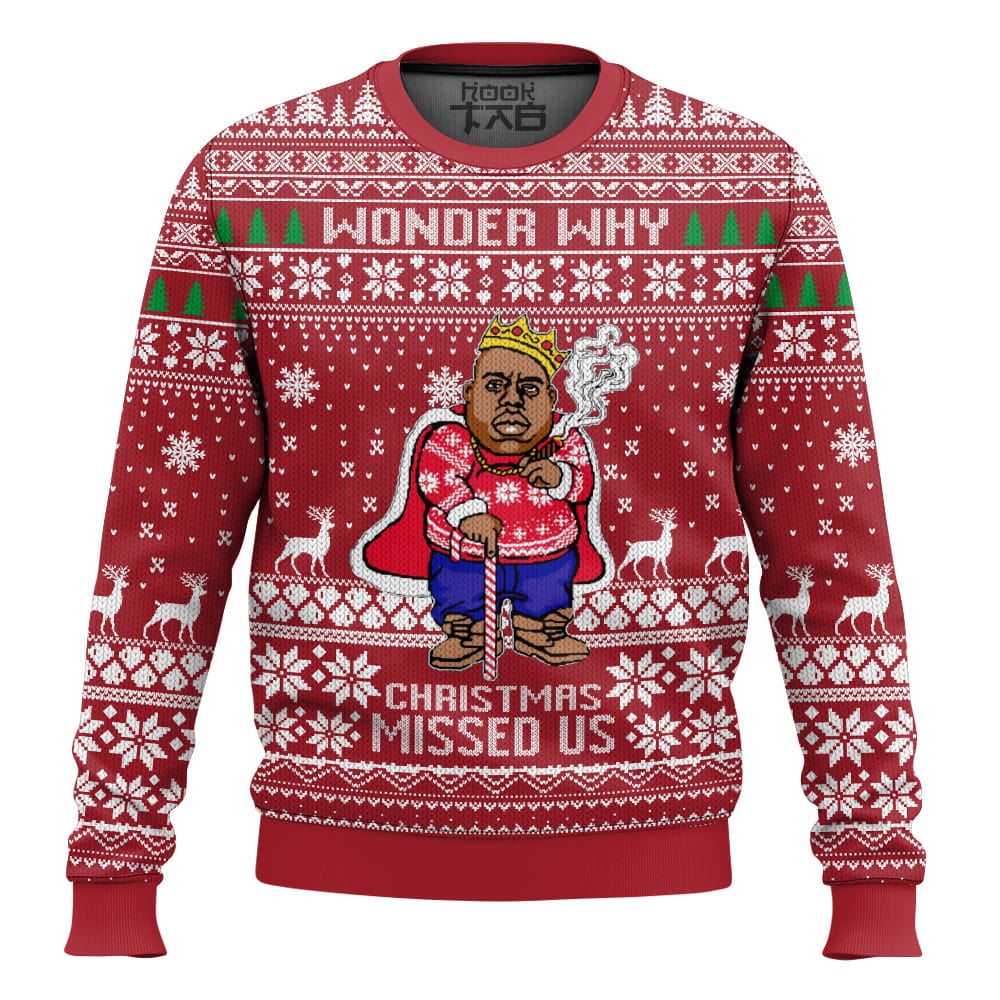 Hooktab Christmas Missed The Notorious B.I.G Ugly Christmas Sweater