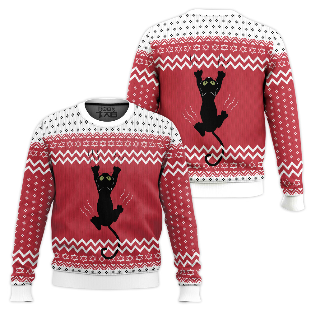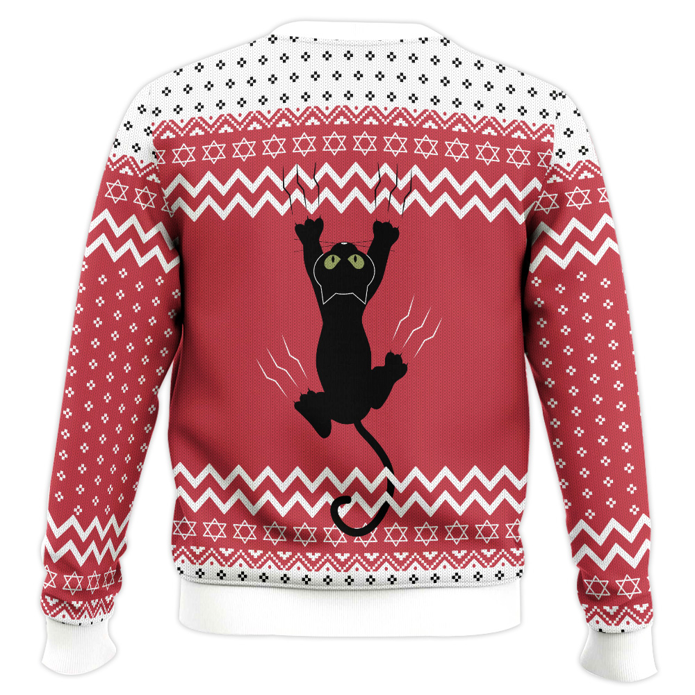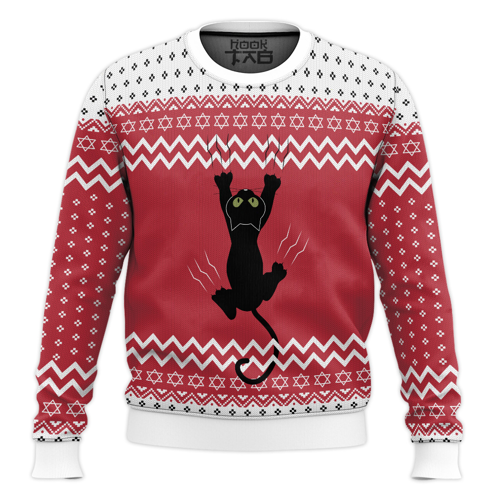 Hooktab Climbing Black Cat Ugly Christmas Sweater