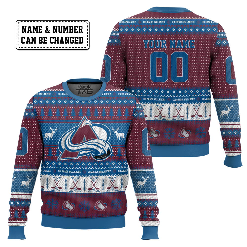 Hooktab Colorado Avalanche – Custom Name And Number Ugly Sweater
