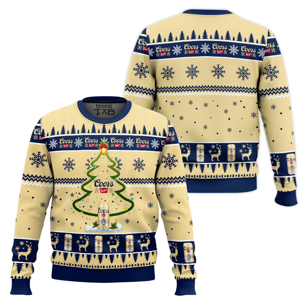Hooktab Coors Banquet Christmas Tree Ugly Christmas Sweater