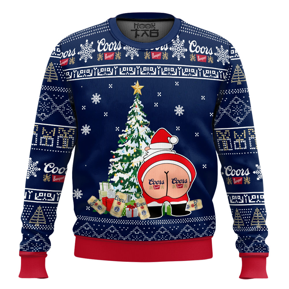 Hooktab Coors Banquet Funny Santa Ugly Christmas Sweater