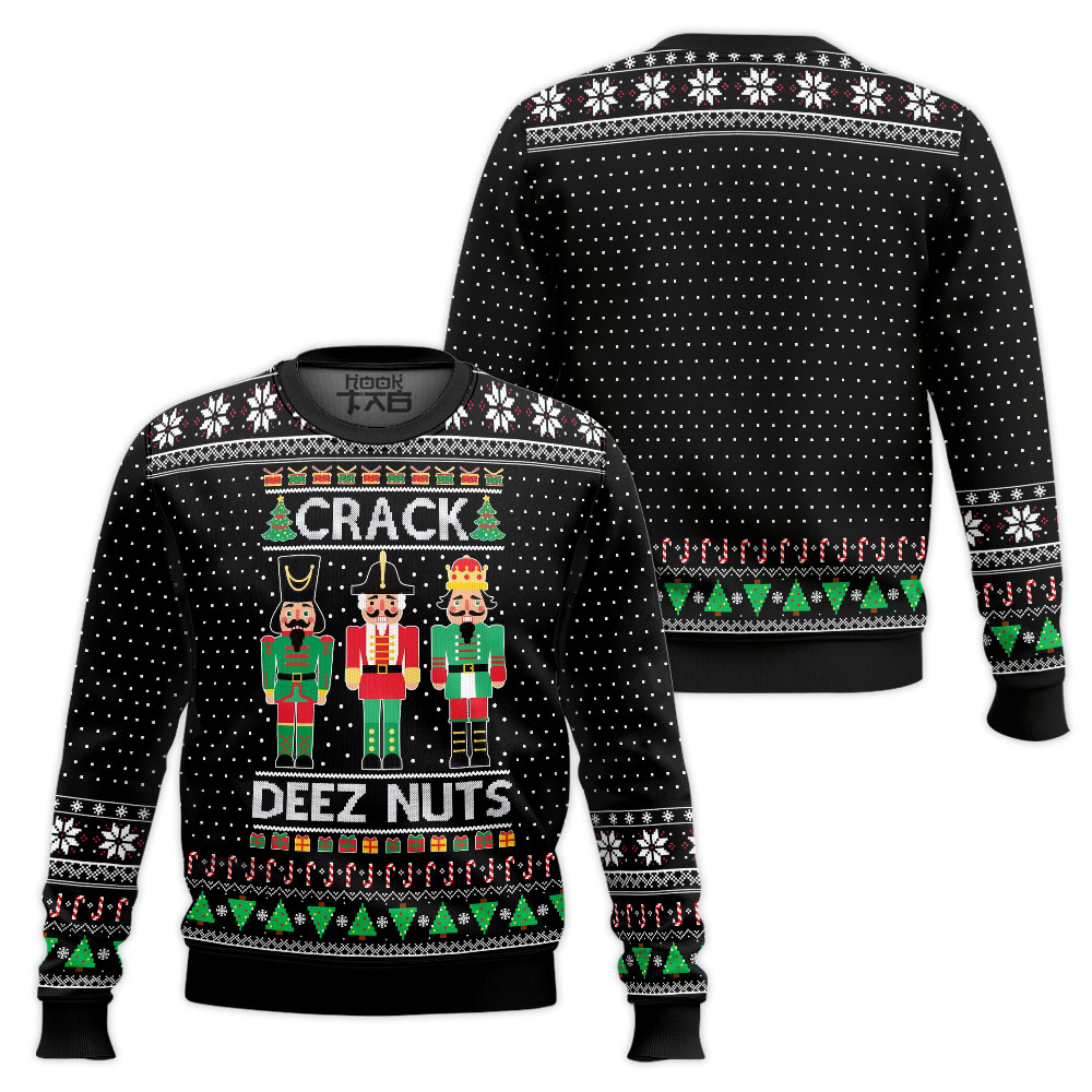 Hooktab Crack Deez Nuts Nutcracker Soldier Ugly Christmas Sweater