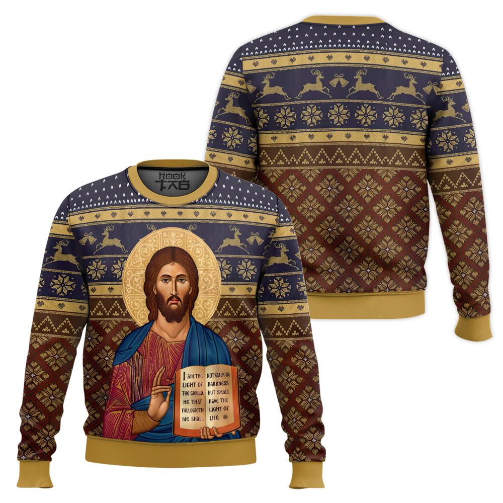 Hooktab Cretan-style Christ Artwork Ugly Christmas Sweater