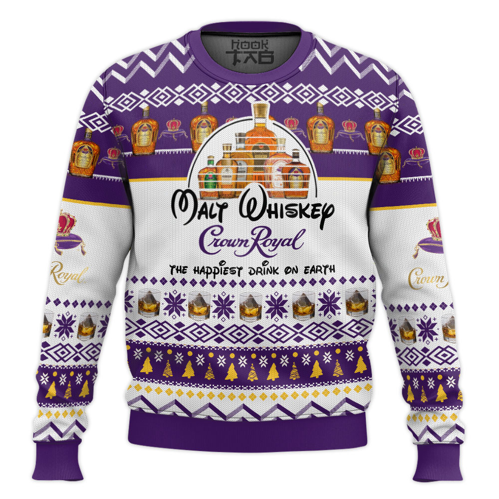 Hooktab Crown Royal Happiest Drink Ugly Christmas Sweater