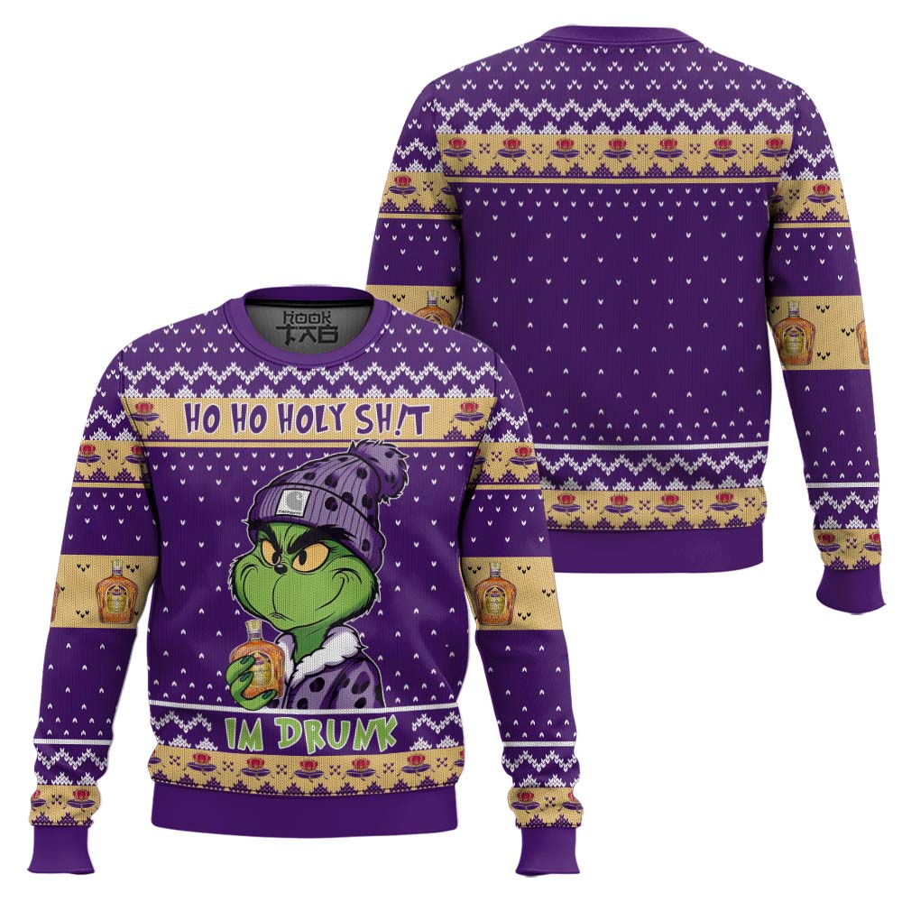 Hooktab Crown Royal Ho Ho Holy Sh!t I’m Drunk Ugly Christmas Sweater