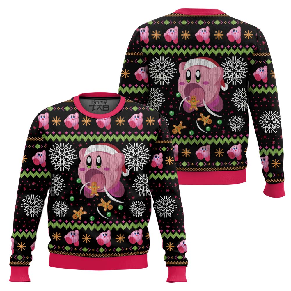 Hooktab Cute Pink Hungry Kirby’s Dream Land Ugly Christmas Sweater