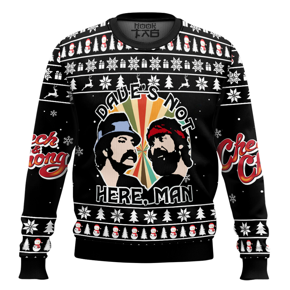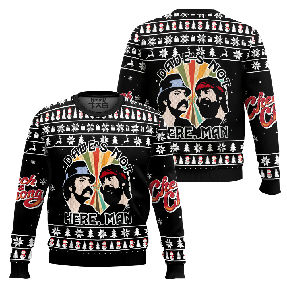 Hooktab Dave’s Not Here Man Cheech & Chong Ugly Christmas Sweater