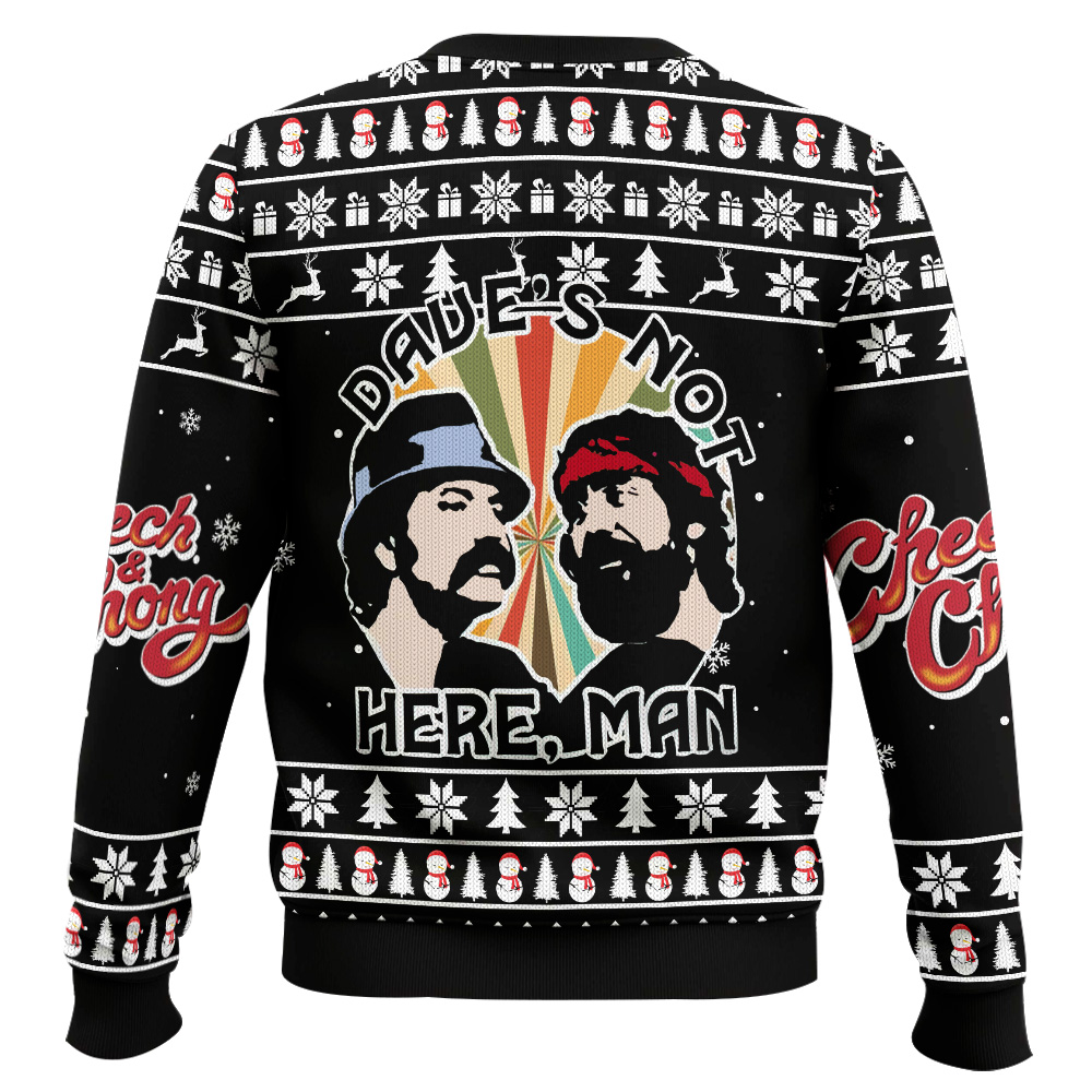Dave’s Not Here Man Cheech and Chong Ugly Christmas Sweater