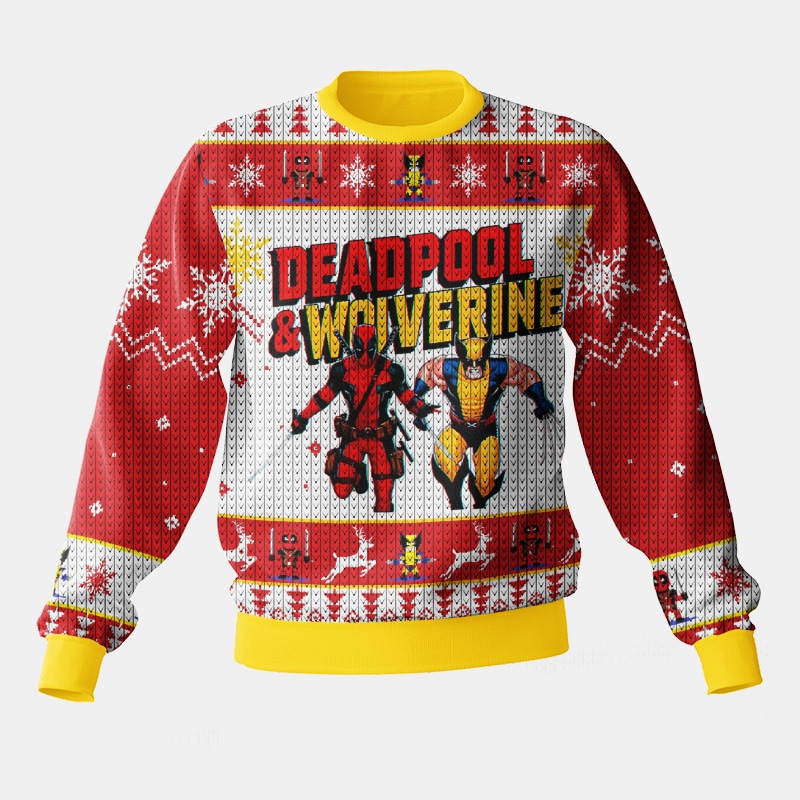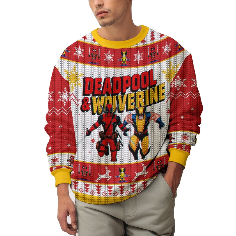 Hooktab Deadpool And Wolverine Happy Halloween Ugly Christmas Sweater