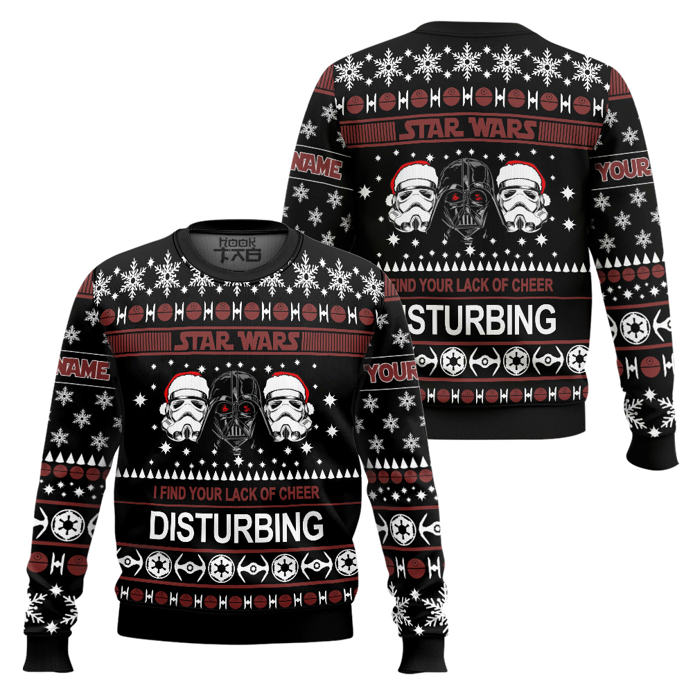 Hooktab Disturbing Star Wars – Custom Name Ugly Christmas Sweater