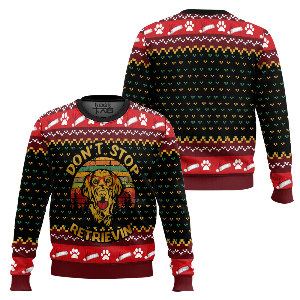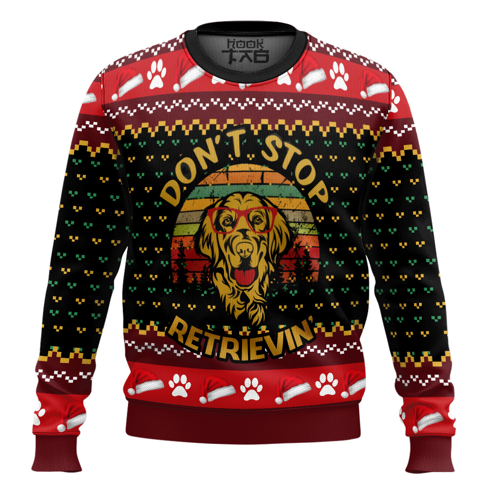 Hooktab Dont Stop Retrievin Golden Retriever Ugly Christmas Sweater