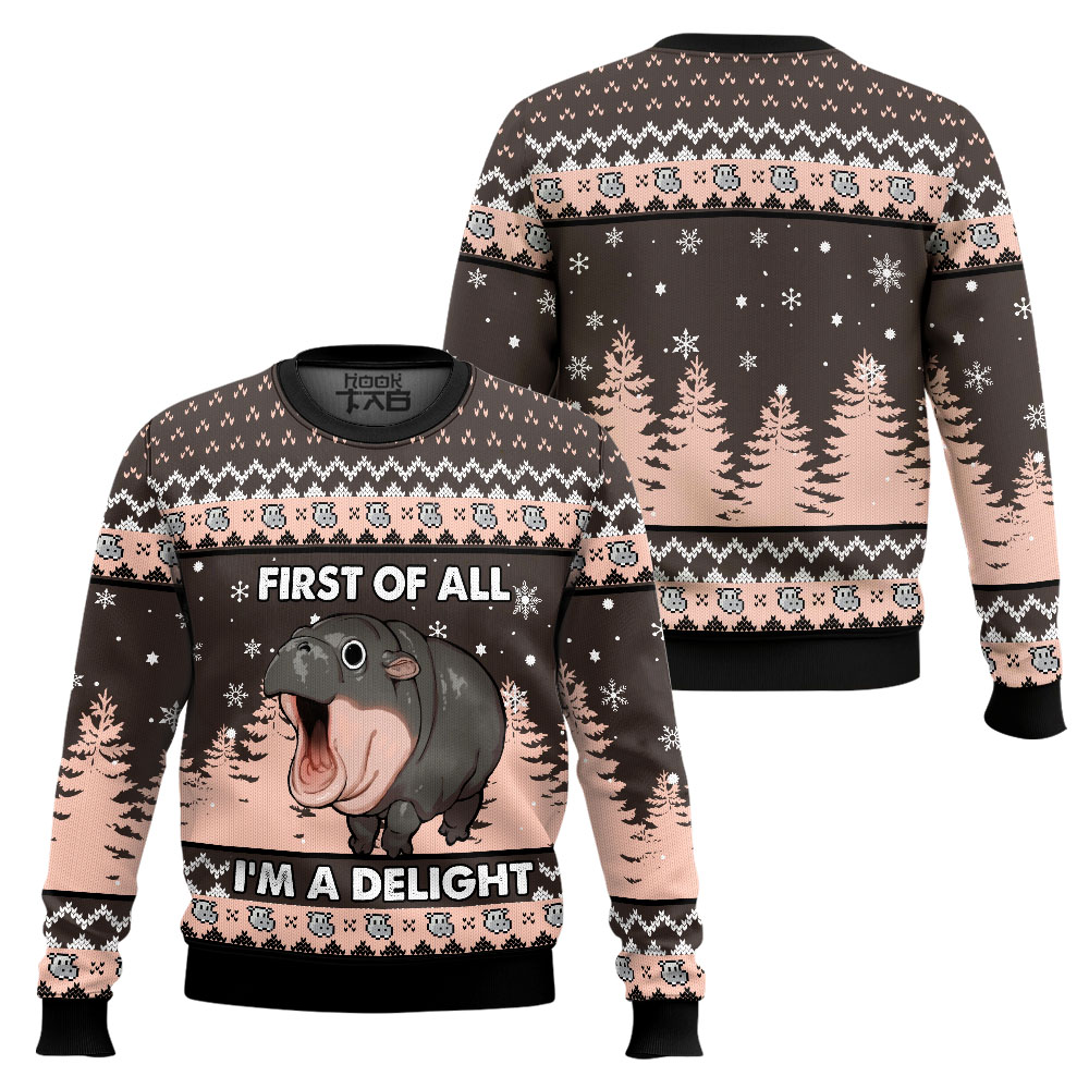 Hooktab First Of All I’m A Delight Hippo Ugly Christmas Sweater
