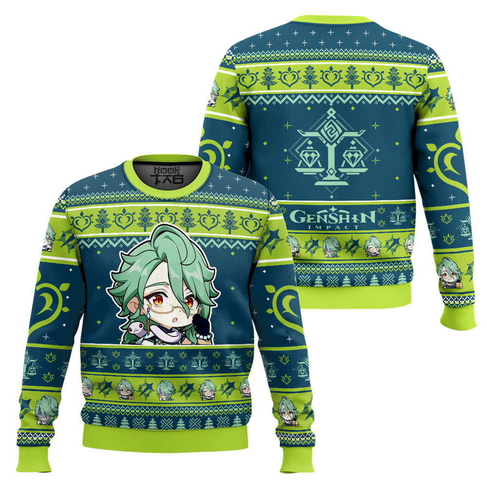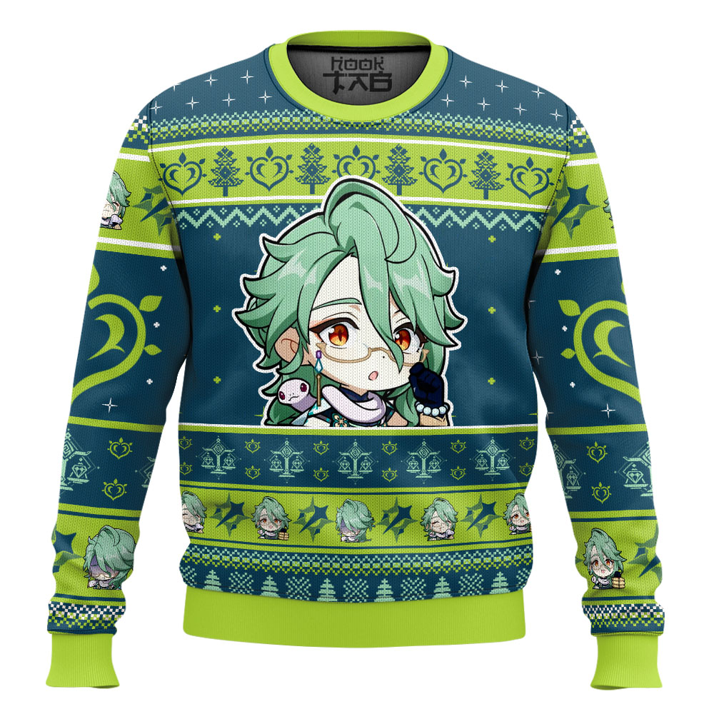Hooktab Genshin Impact Baizhu Ugly Christmas Sweater