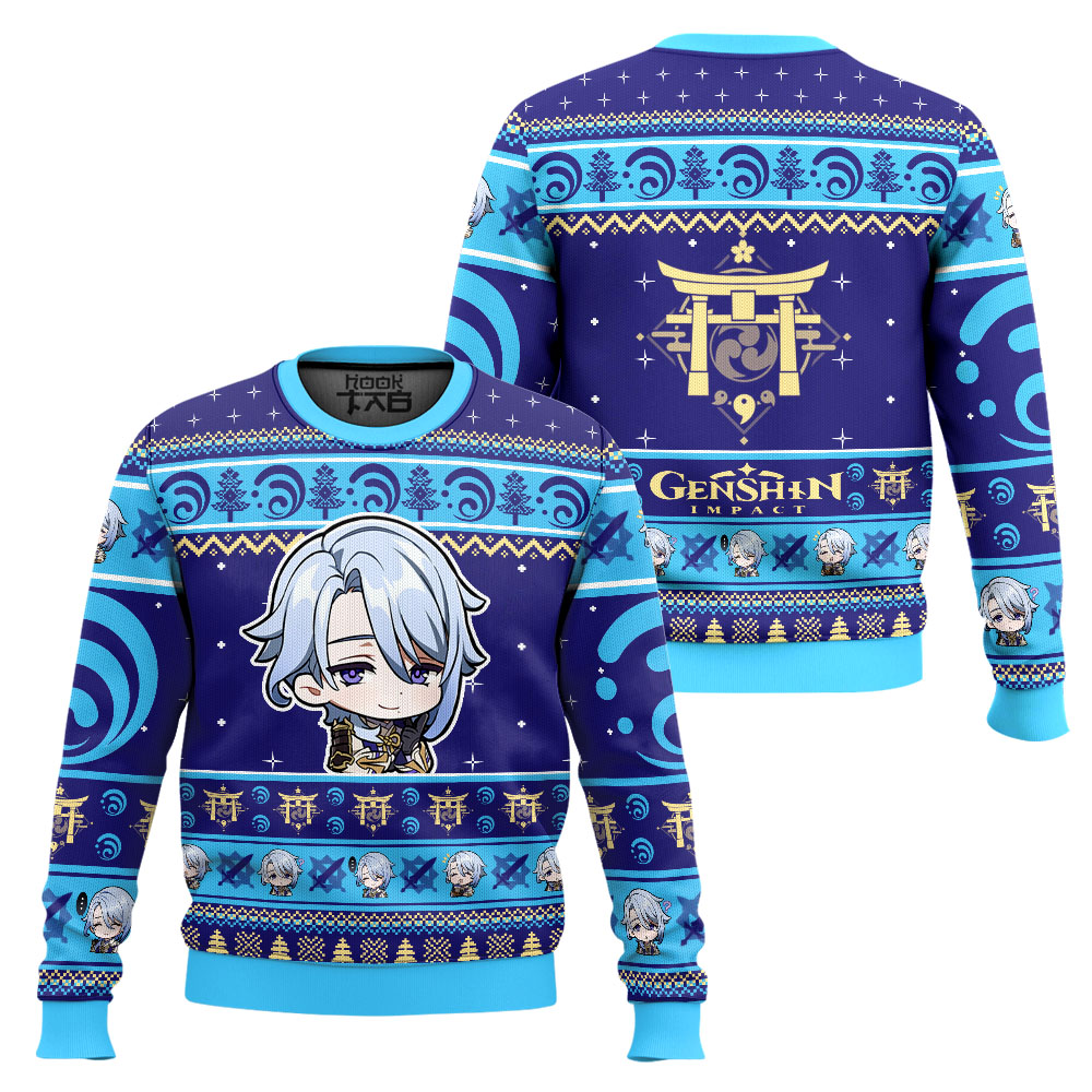 Hooktab Genshin Impact Kamisato Ayato Ugly Christmas Sweater