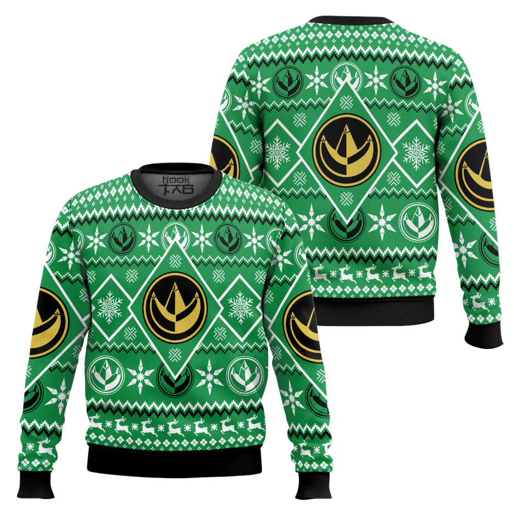 Hooktab Green Power Rangers Mighty Morphin Ugly Christmas Sweater