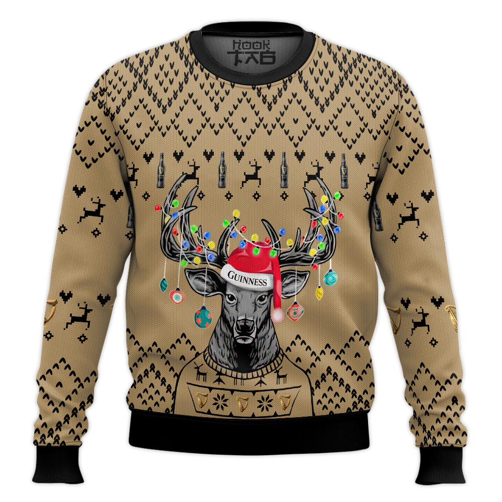 Hooktab Guinness Beer Reindeer – Custom Name Ugly Christmas Sweater