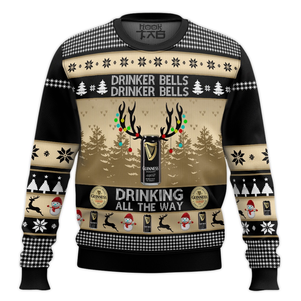 Hooktab Guinness Drinker Bells Ugly Christmas Sweater