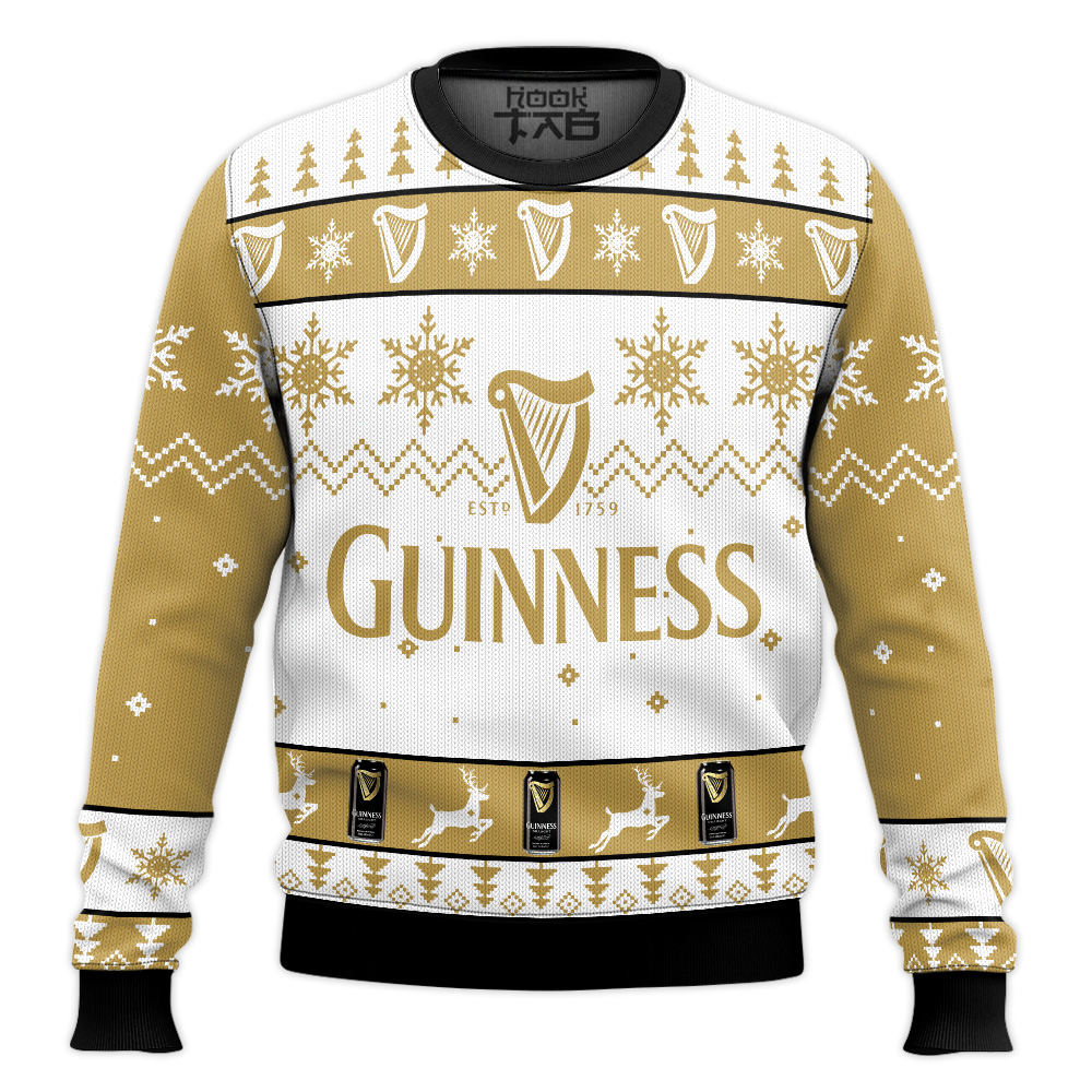Hooktab Guinness Stout Beer Reindeer Ugly Christmas Sweater