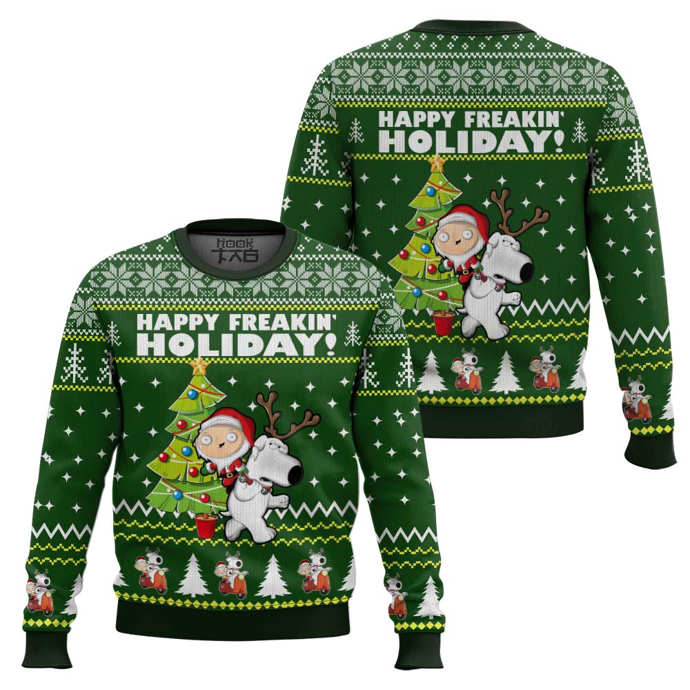 Hooktab Happy Freakin Holidays Family Guy Ugly Christmas Sweater