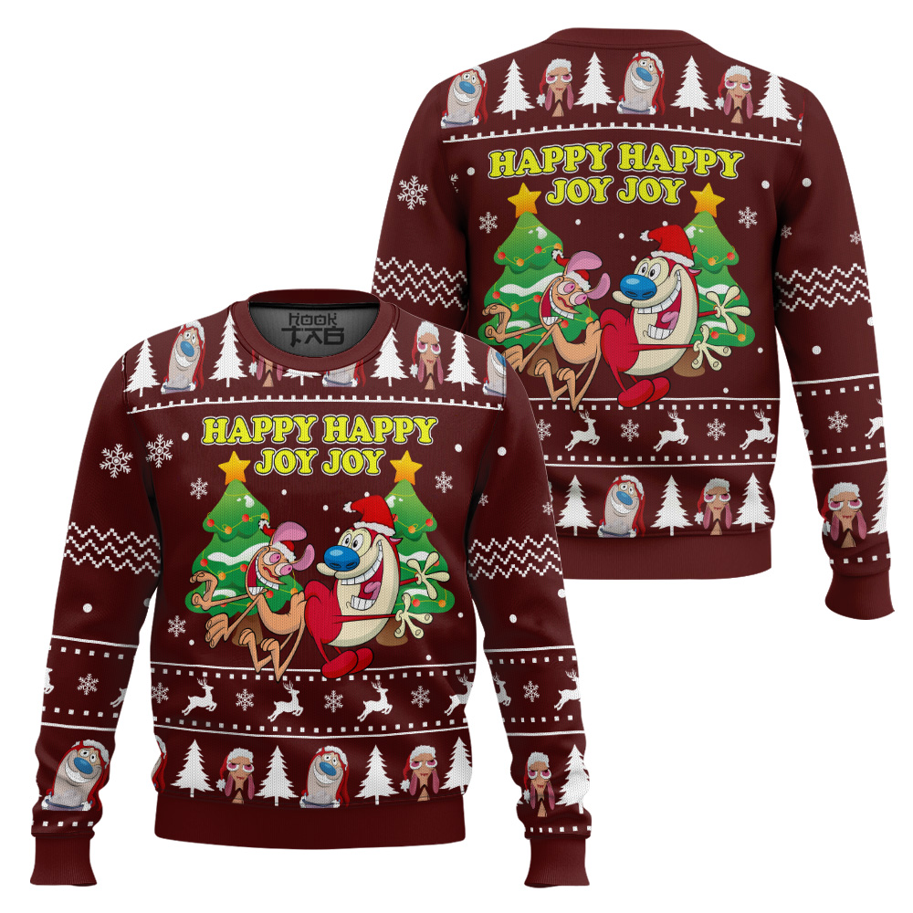 Hooktab Happy Happy Joy Joy Ren And Stimpy Ugly Christmas Sweater
